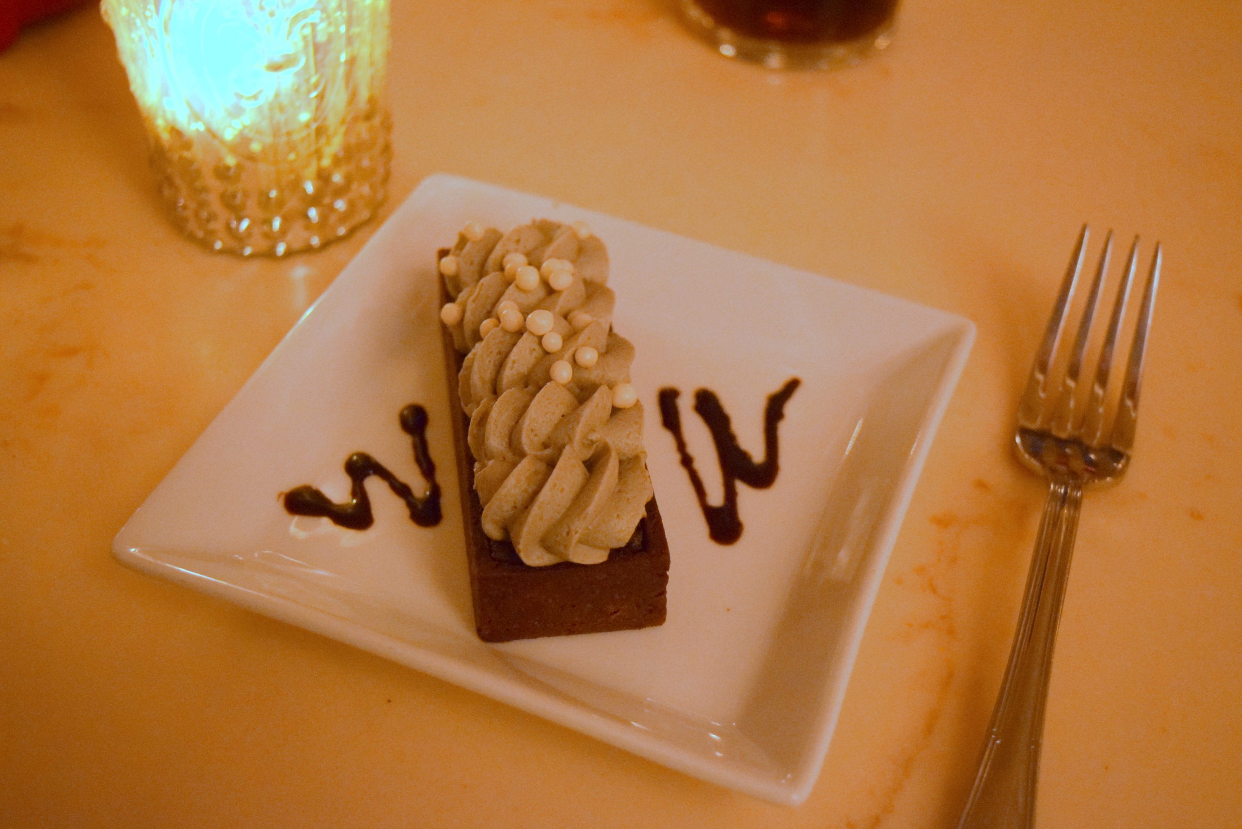 The Grey Stuff - esta é a sobremesa mais famosa do restaurante. Lemos muito na internet sobre ela e não havia dúvida. Quando a garçonete chegou com o carrinho repleto de doces, não hesitamos. E valeu a pena. Que delícia! Bolinho de chocolate com uma cobertura na cor cinza geladinha. Perguntamos para a garçonete o que era essa cobertura e ela respondeu que esse segredo a Mrs Potts (personagem do filme) não revela para ninguém. Ok, está certo. :) Valor: U$4.19