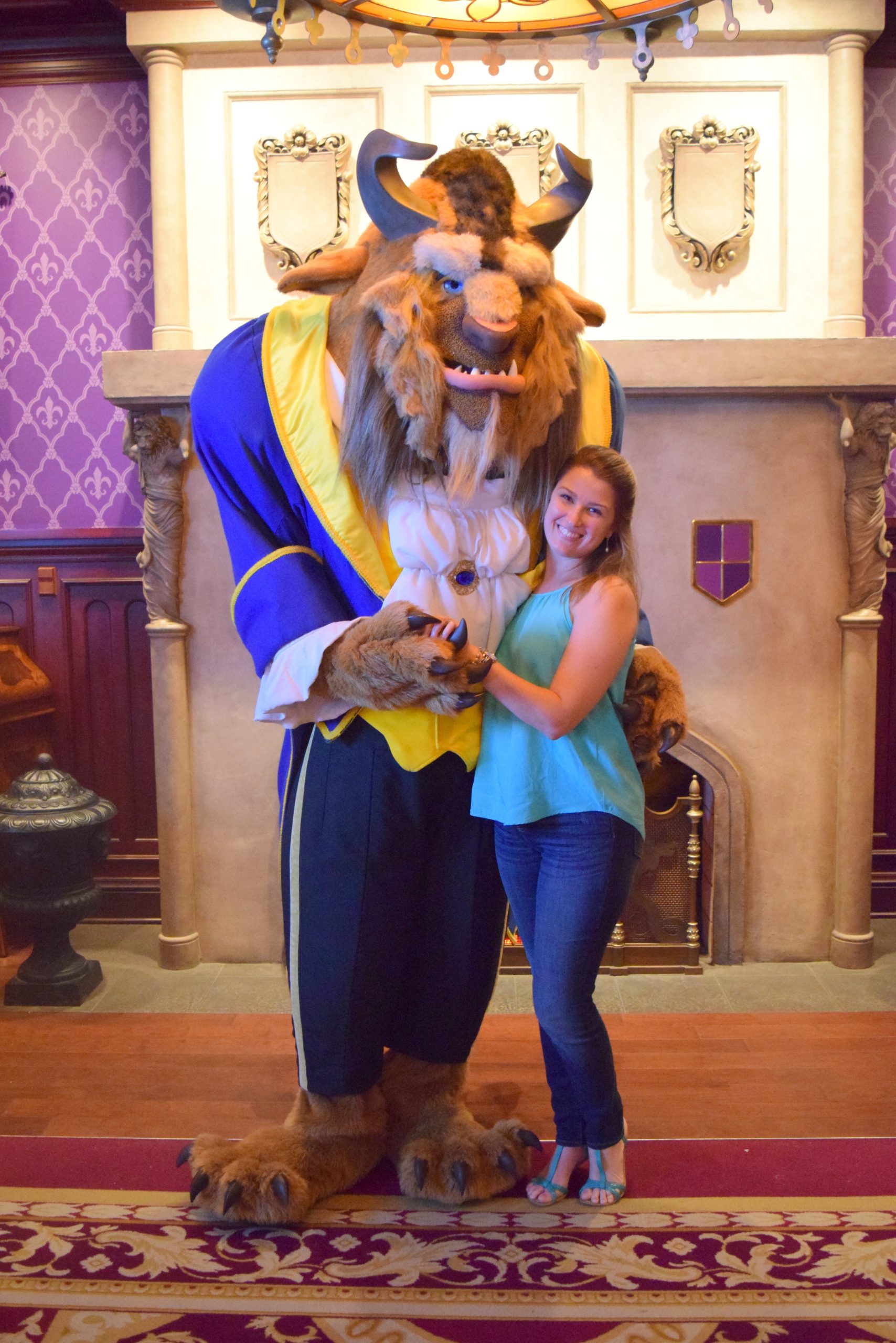 O tamanho da Fera impressiona. Ele é enorme e parece até um pouco desastrado por causa de sua altura. É bem simpático (apesar da cara de fera) e ficou até o fechamento do restaurante. Este é o único local onde a Fera fica disponível para fotos. Antigamente, ele ficava com a Bela no pavilhão da França, no parque Epcot. Mas agora, somente a Bela fica neste local.