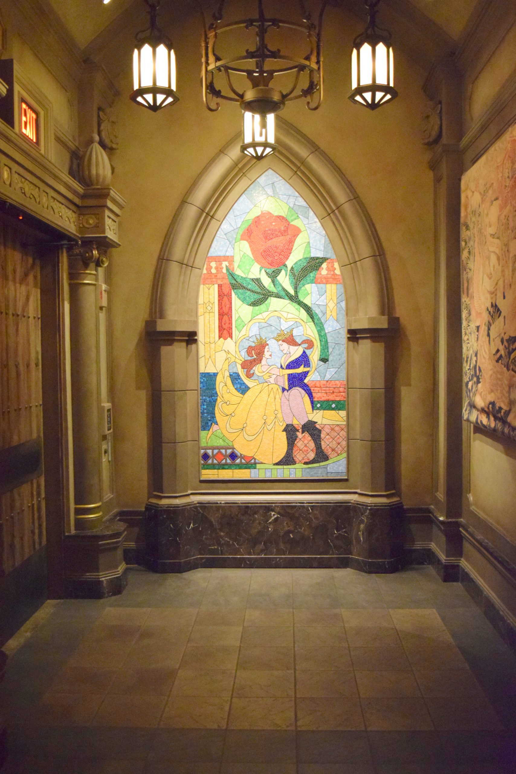 Há 03 salões: The Grand Ballroom (salão principal - onde ficamos e onde acontece a dança principal no filme), The West Wing (onde fica a rosa do filme, projetada direto em sua cúpula de vidro) e o The Castle Gallery (o mais simples de todos, decorado com quadros e uma estátua com o anfitrião e sua bela amada).