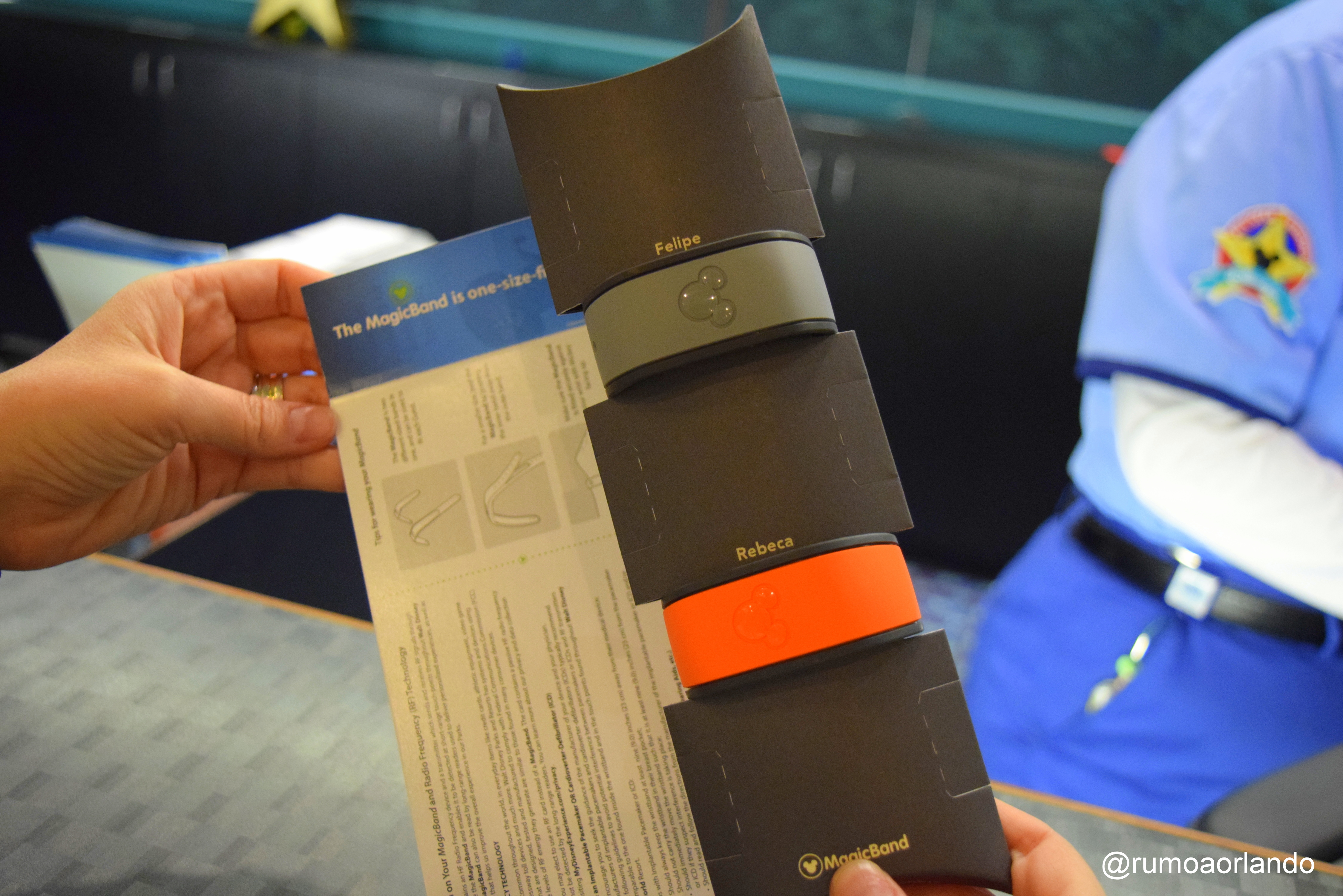 Sua reserva será verificada no sistema e, caso tenha comprado com antecedência no My Disney Experience, suas Magic Bands serão entregues neste momento. Caso não tenha adquirido, receberão o cartão Key to the World, que terá funcionalidades já descritas no começo deste post.