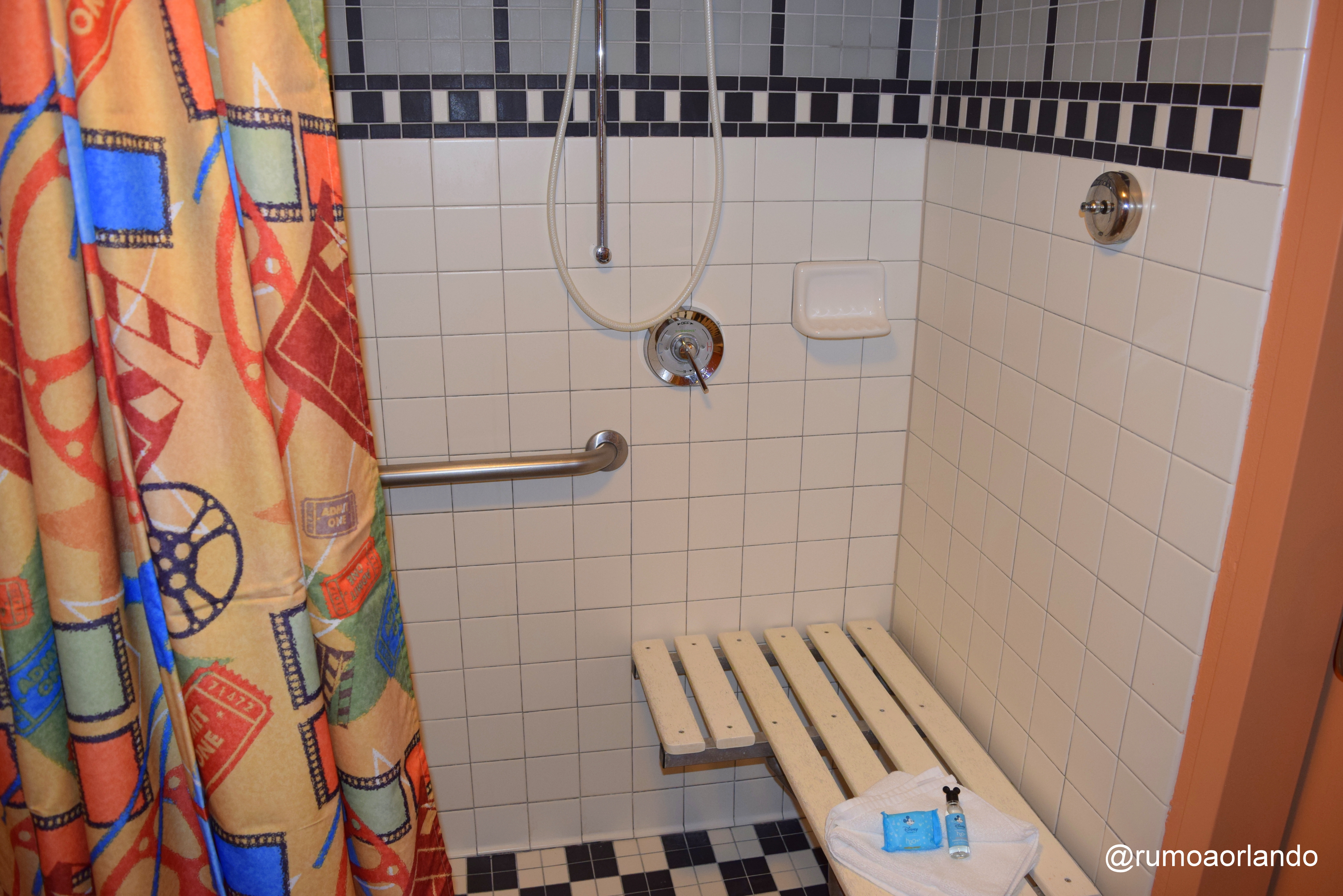 Outra diferença neste quarto que ficamos no All Star Movies foi o banheiro, que ao invés de possuir banheira, como a grande maioria dos hotéis da cidade, era adaptado para deficientes físicos (mesmo nós não tendo feito esta solicitação).