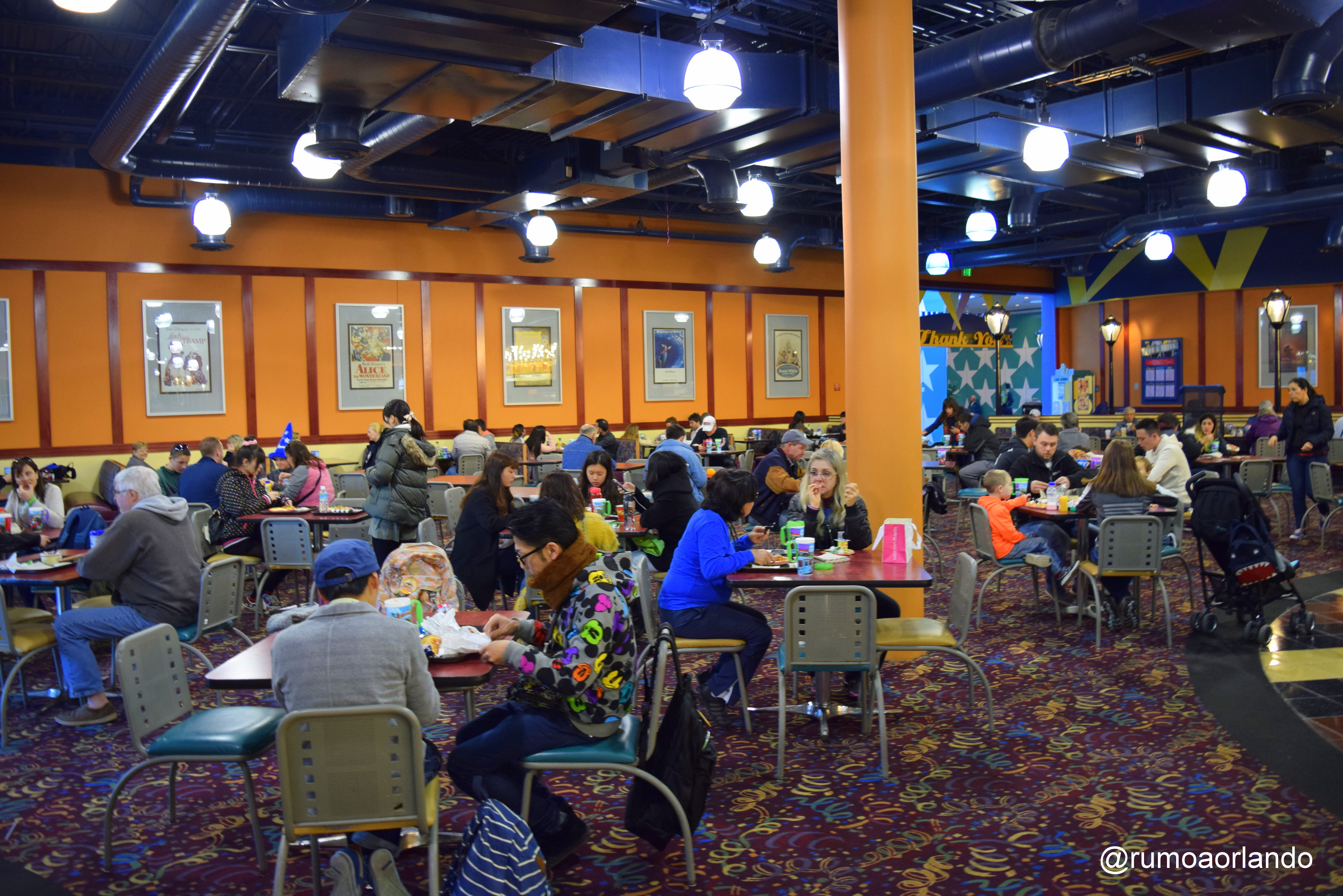 A praça de alimentação dos hotéis Disney oferece comidas, lanches e itens para café da manhã. Além disso, há as baias de bebidas, que oferecem café, refrigerantes, chocolate quente, chás e água.
