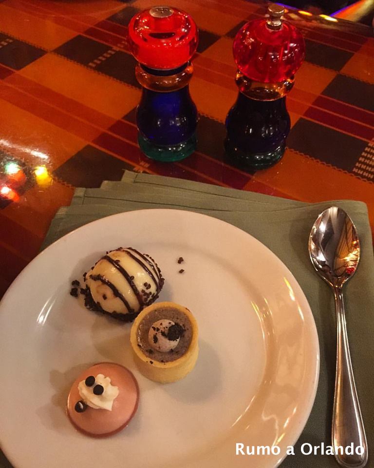 O cardápio do jantar é bem parecido com os oferecidos nos restaurantes Tusker House, Chef Mickey's e Hollywood and Vine, porém, aqui o destaque fica por conta de alguns pratos com influência africana.
