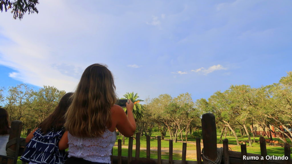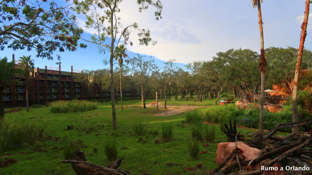 Os animais ficam na parte externa do hotel. Para vê-los, basta entrar na recepção e seguir para os fundos do mesmo. Logo à frente, você já verá a reserva (os quartos deste resort têm vista para ela - luxo total!) e alguns funcionários (Cast Members) ajudando quem tem dúvida sobre algo.