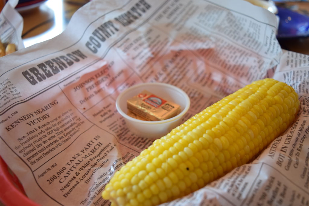Pedimos um milho para complementar este prato. E aqui vai uma curiosidade: dificilmente você encontrará milho salgado nos Estados Unidos, ou seja, o milho não é como aqueles vendidos na praia do Brasil, que são beeem salgados e ainda coloca-se uma manteiguinha em cima. Nos EUA, o milho é DOCE! Da primeira vez, você vai estranhar, mas depois, acostuma e acha até gostosinho. :) Valor: U$1.99