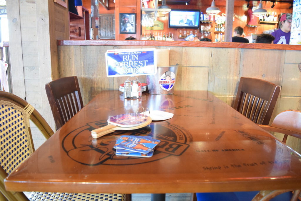 Além disso, a decoração do Bubba Gump Shrimp não poderia ser outra. Imagens, roupas, objetos e quadros relacionados ao filme. Tudo, absolutamente, tudo dentro do restaurante remete a Forrest Gump.