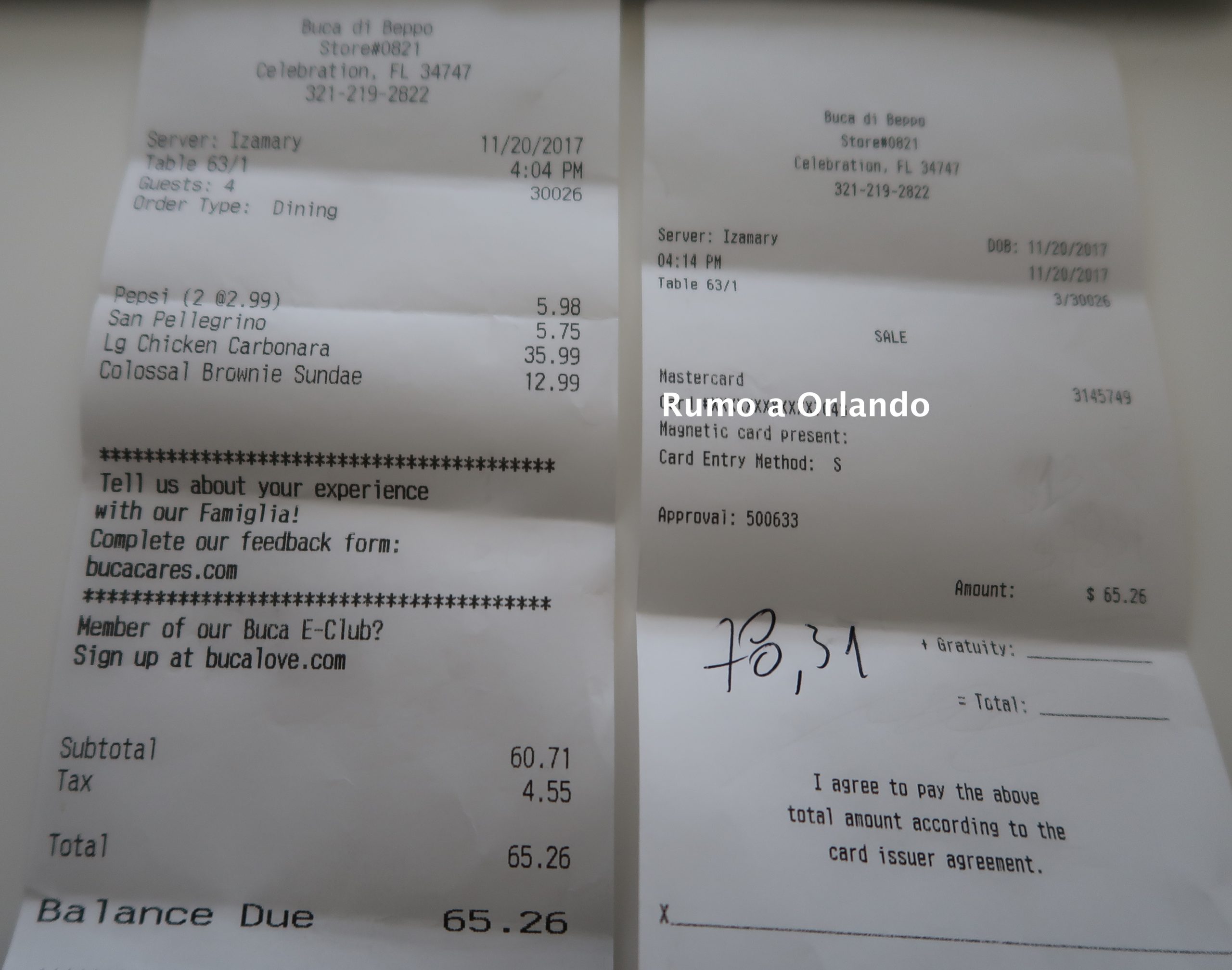 E, por falar em dividir... lembra que mencionamos que uma das coisas boas do Buca é poder dividir a conta? Então, veja abaixo o valor total da nossa: