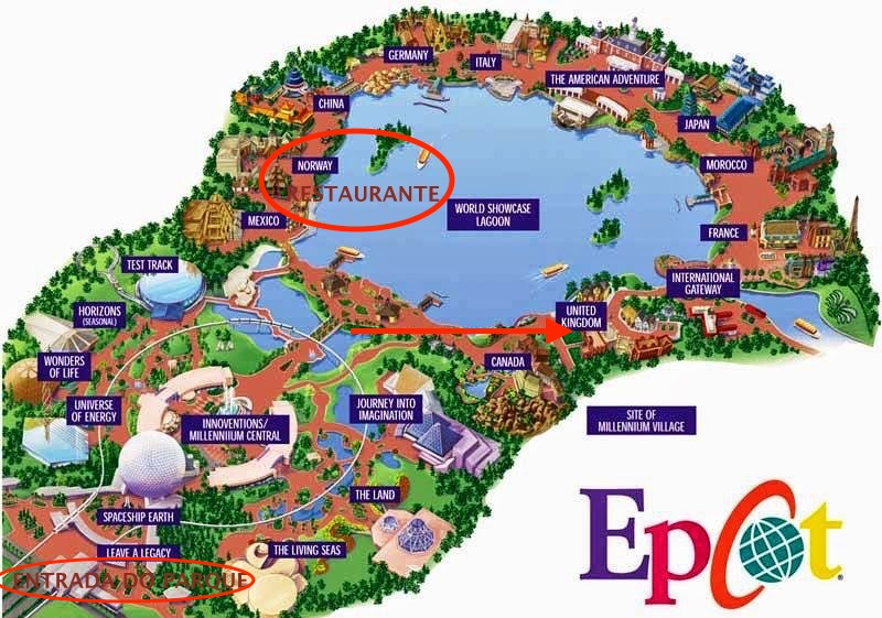 Ele fica dentro do pavilhão da Noruega, bastante afastado da entrada do parque, portanto, aí vai a primeira dica: se o seu horário para o café da manhã for cedo, lembre-se que você terá que chegar mais cedo ainda, pois somente da entrada do parque até o restaurante, tem uma caminhada de cerca de 15 minutos.