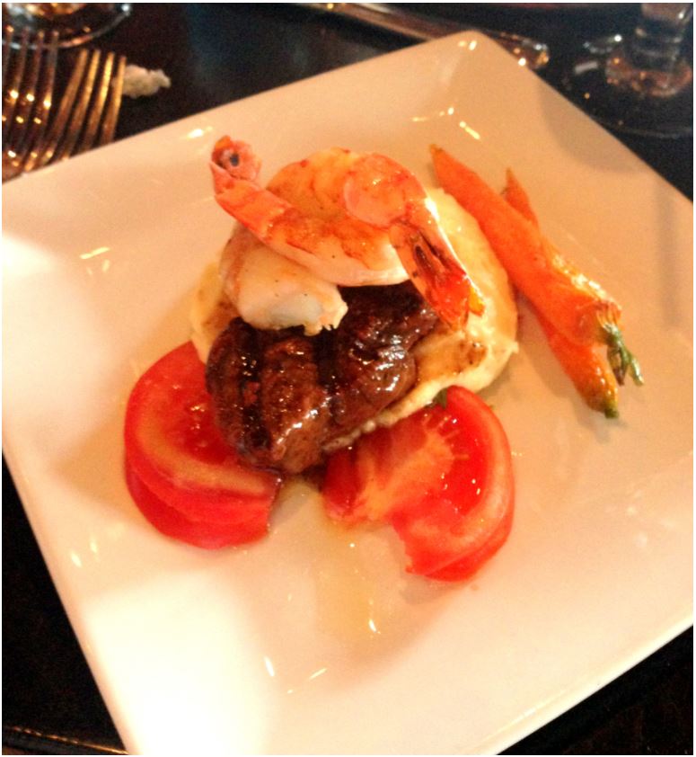 Steak and Shrimp - prato principal muito gostoso. É um steak bem macio, camarões e purê de batata. Eu não gosto muito do purê de batata americano (e olha que essa é uma das minhas comidas preferidas), porém esse estava muito gostoso, bem cremoso e consistente.