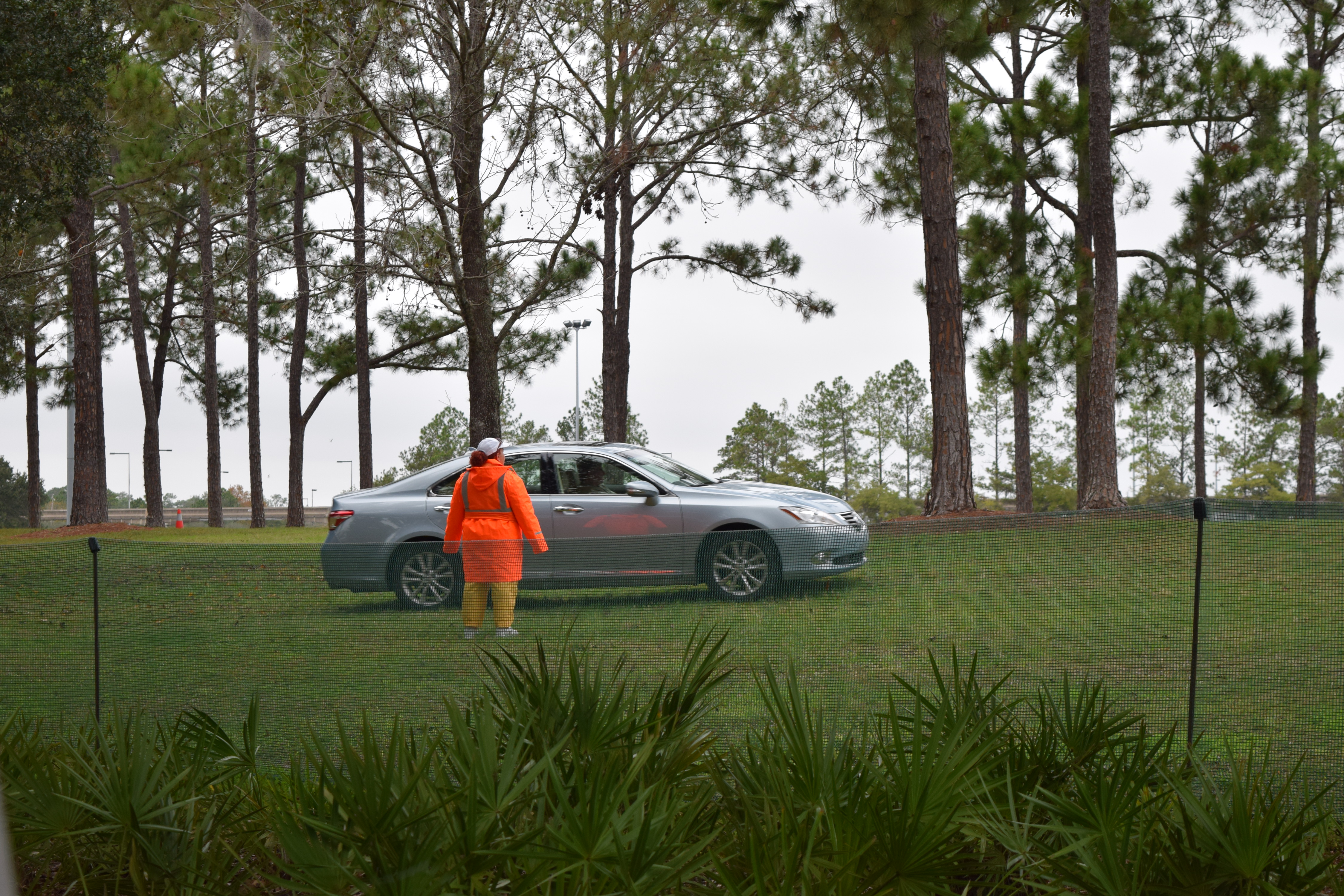 O trajeto e a chegada ao parque foram muito tranquilos. Levamos o tempo normal, sem pegar trânsito algum. O lado ruim foi que, por termos chegado tarde, paramos em um dos últimos estacionamentos. O fluxo de carros dentro do Parking Lot era enorme. Muitos veículos estacionados nas gramas, porém, com a organização de sempre. Percebemos muito mais Cast Members trabalhando na área do estacionamento do que o normal.