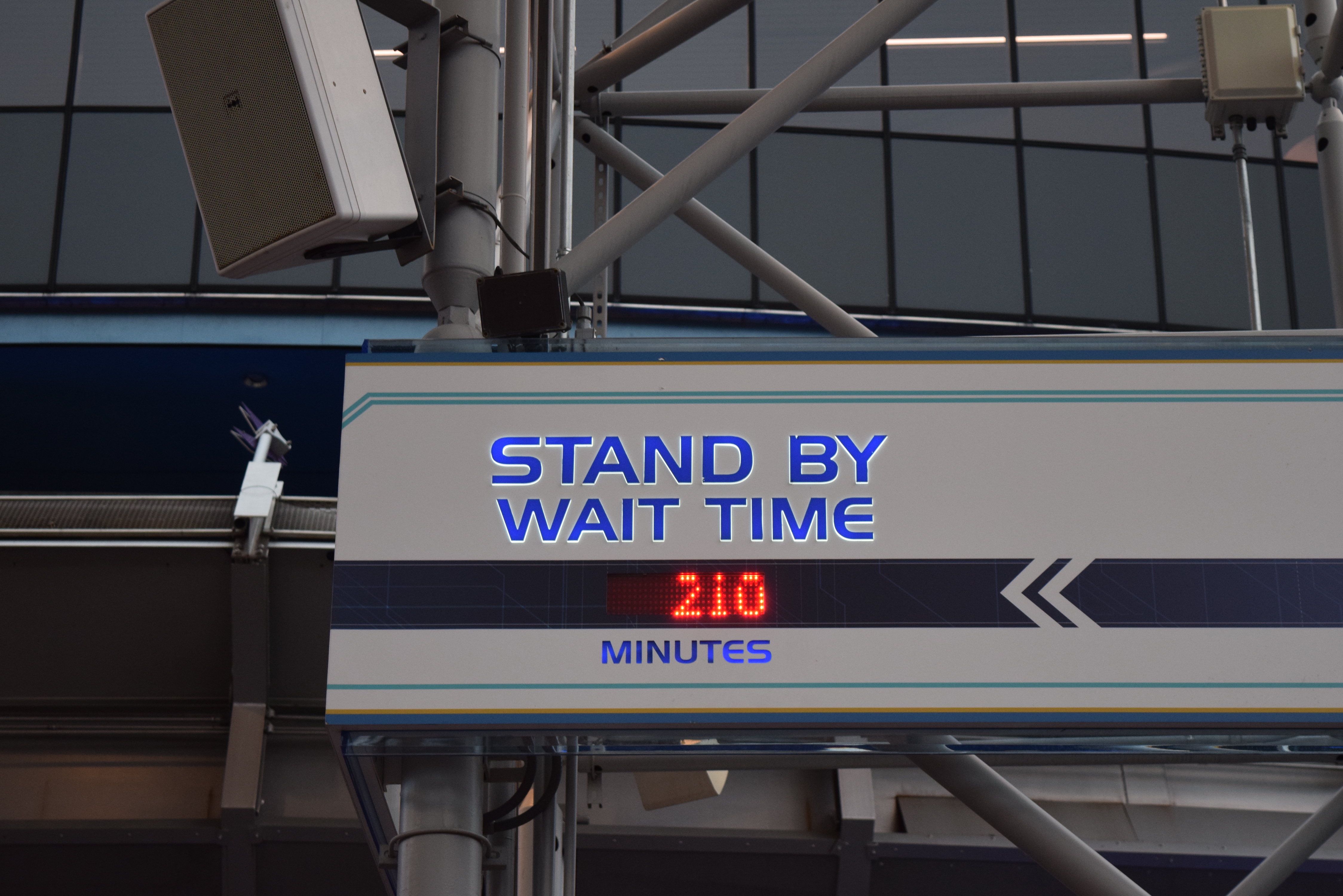 Sobre as filas nas atrações, bem... Podemos dizer que não é o melhor dia para voar na asa delta do Soarin, ir para o espaço na Mission Space, muito menos, correr a 105km/h nos carros do Test Track. ? O tempo de espera nestas, que são as atrações mais bacanas do parque, chegava a quase 4h. As filas alcançavam a parte externa da área de espera. Insano! Na área de espera do Soarin havia até um policial de fora da Disney para controlar a multidão no caso de confusão.