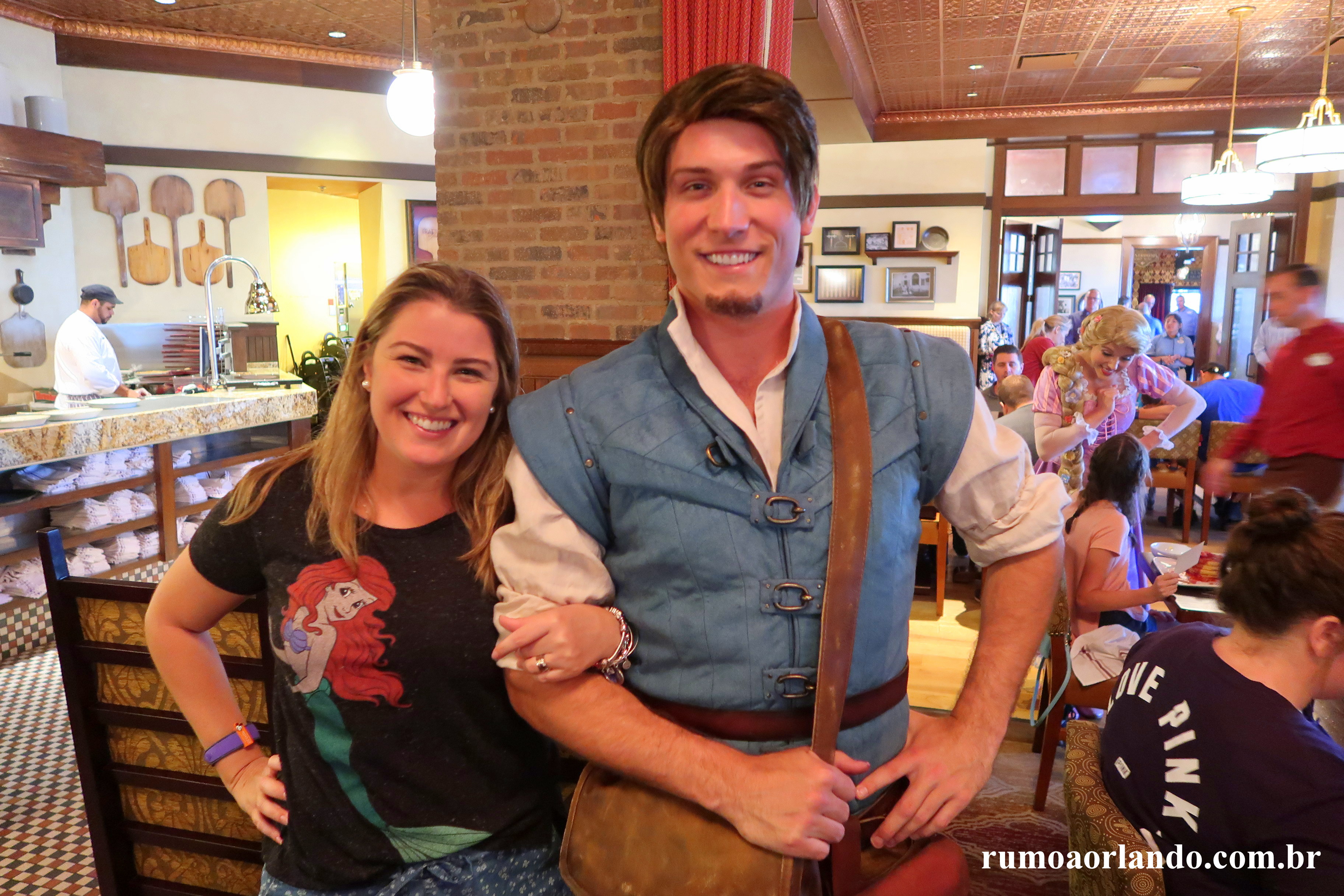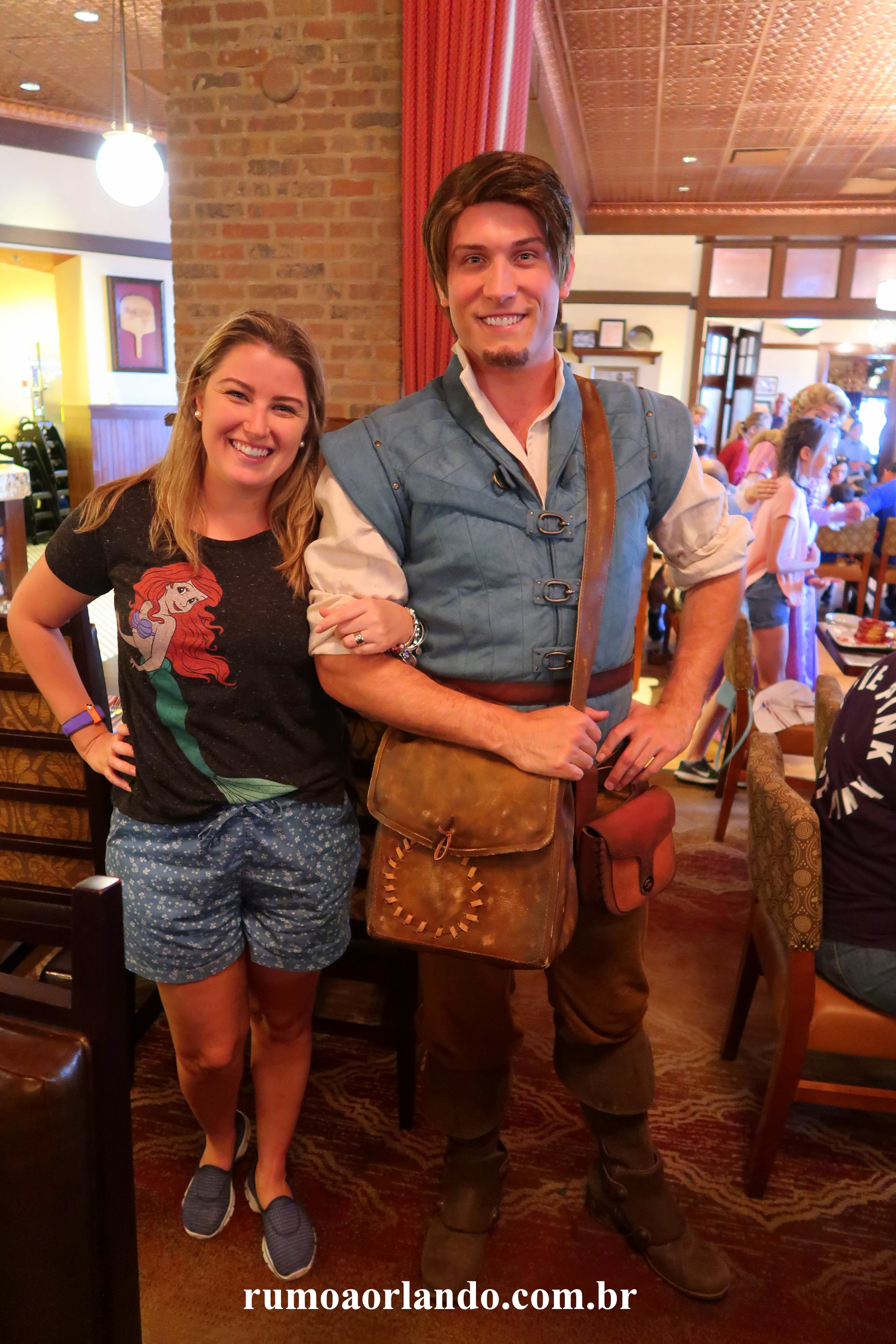 Flynn Rider é o mais simpático de todos! Faz brincadeiras, vem com o sorrisão largo e... um segredo: meninas, nunca vi personagem tão bonito nos parques quanto ele! Aproveitem! rsrsrs ;)