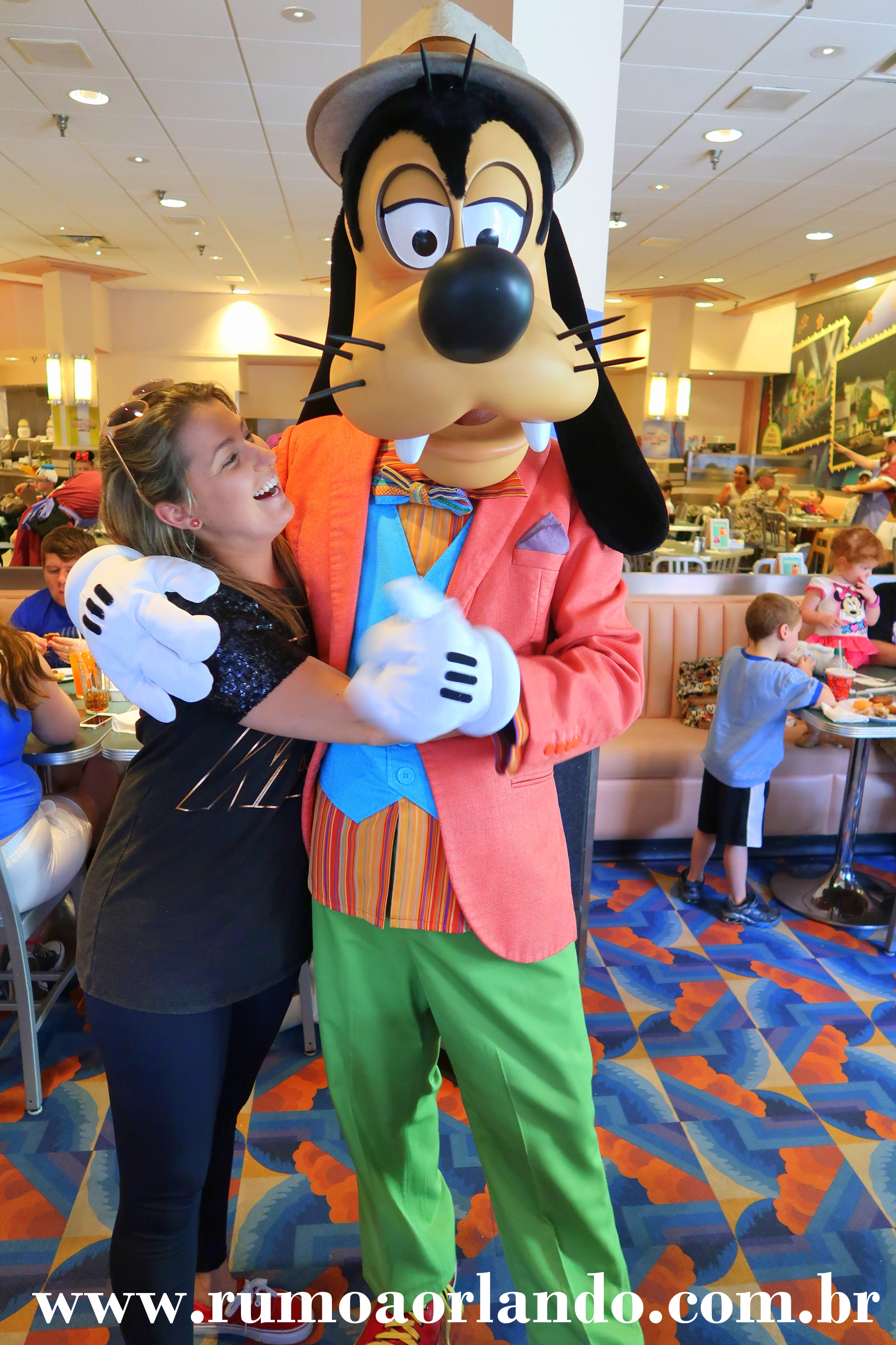 4- Fique de olho ao redor. Se tiver algum personagem por perto, não levante para pegar comida no buffet. Espere um pouquinho e garanta logo a foto. A comida fica lá o tempo todo. Já os personagens, não. Eles possuem uma ordem de visitação às mesas, então, se você perder um, ele poderá demorar a voltar. Os próprios garçons avisam isso assim que sentamos.