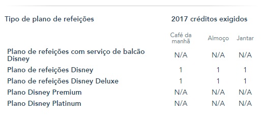 Se você é participante do Disney Dining Plan, o Plano de Refeições da Disney, confira abaixo os créditos necessários.