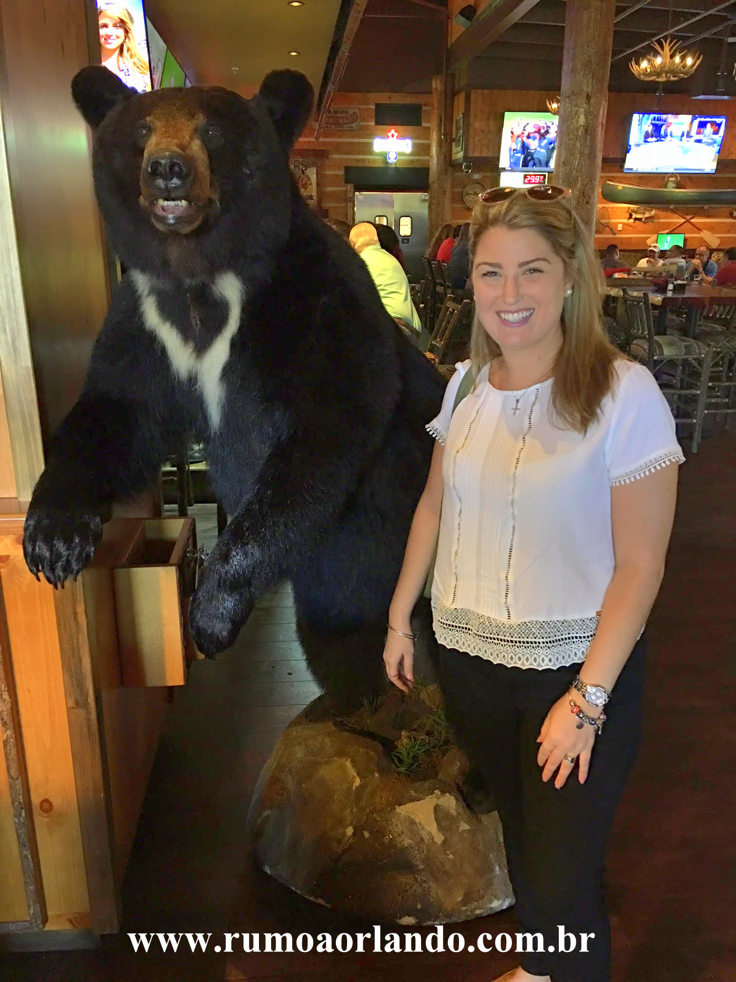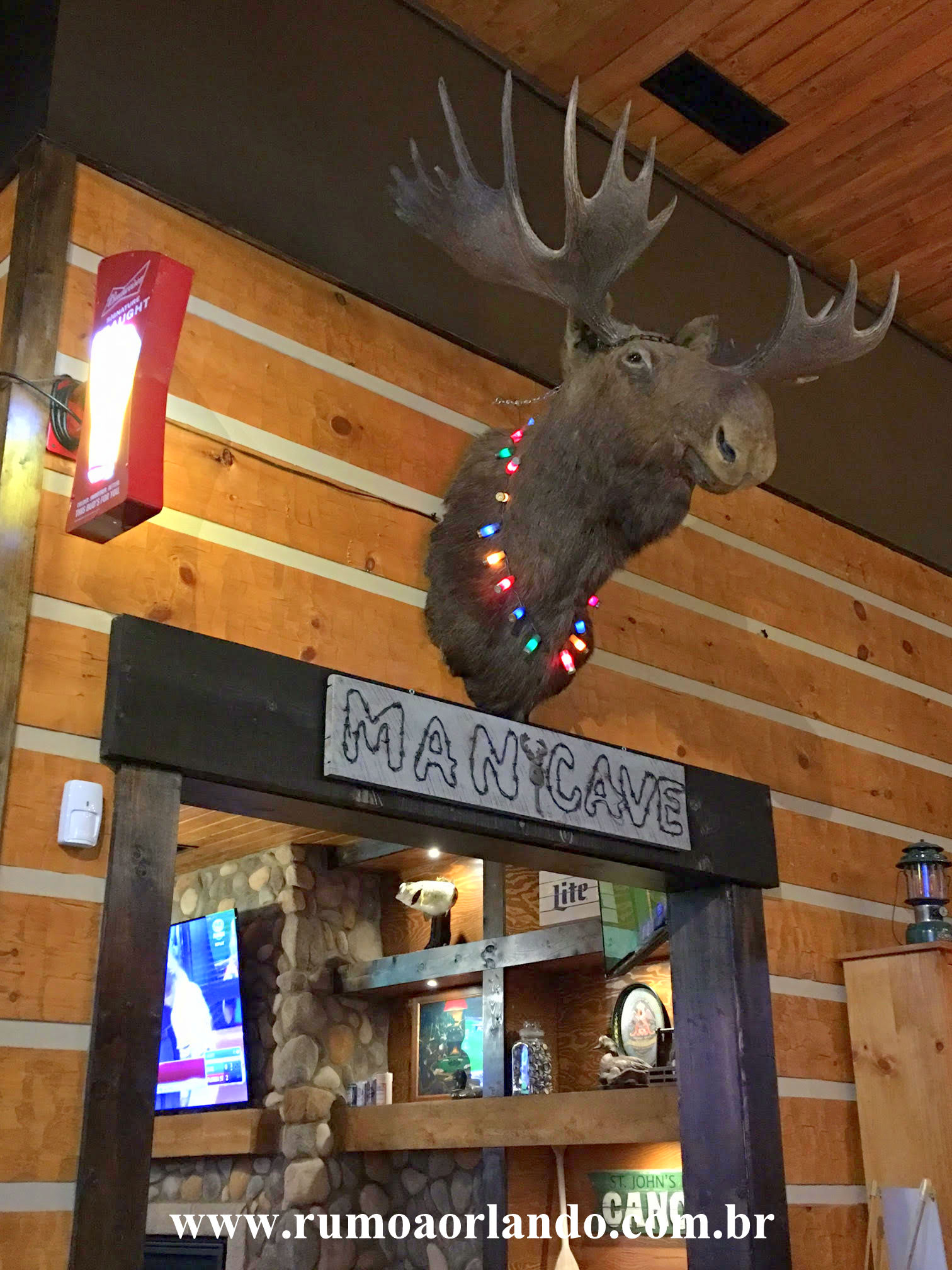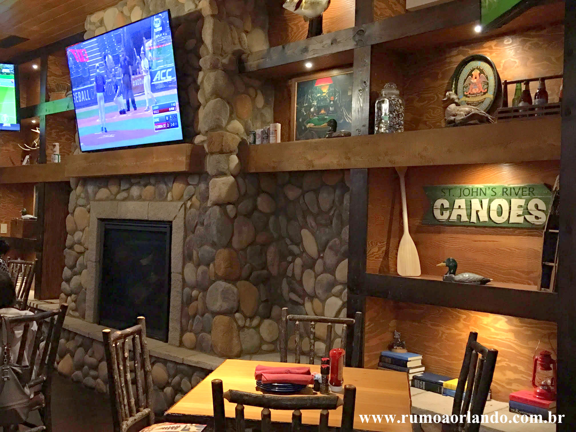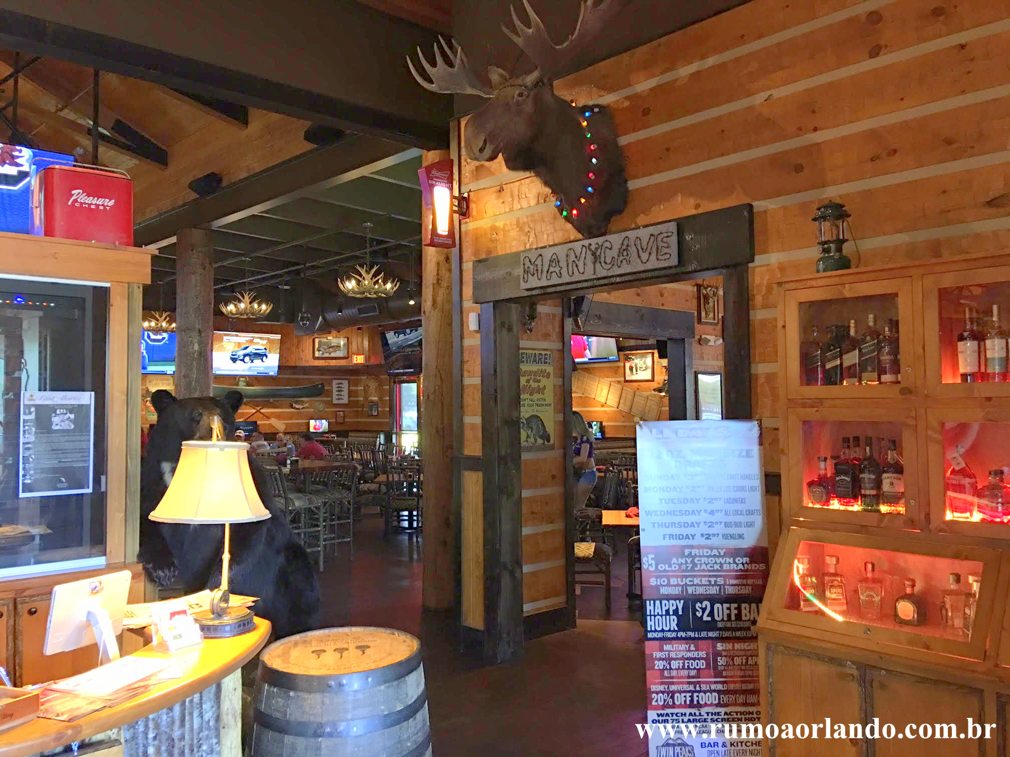 Sua temática gira em torno de hotéis da montanha, então, desde a entrada do restaurante, já é possível ver ursos, lareiras, muita madeira rústica, animais na parede, quadros temáticos e muito mais. Nós achamos a decoração incrível e um dos pontos altos do local.