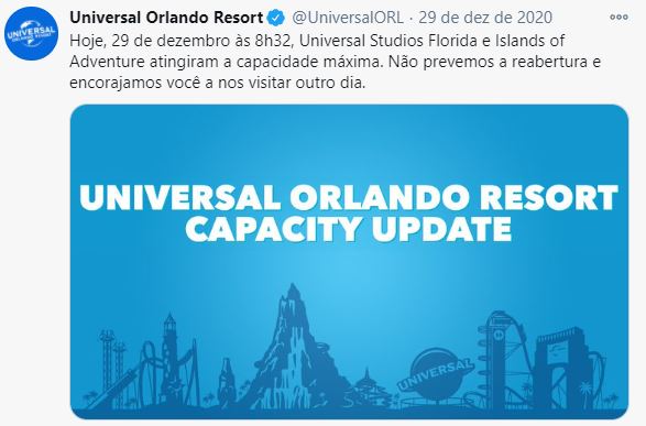 No dia 29 de dezembro, a Universal divulgou um comunicado, solicitando que os visitantes que estavam com viagem marcada e com dias flexíveis, não fossem ao parque no dia 30 de dezembro, pois ele certamente fecharia bem cedo por capacidade máxima. E foi exatamente o que aconteceu, como puderam observar acima. Às 08:10h, ninguém mais podia entrar nos parques. Neste dia, eles abriram às 08h da manhã.