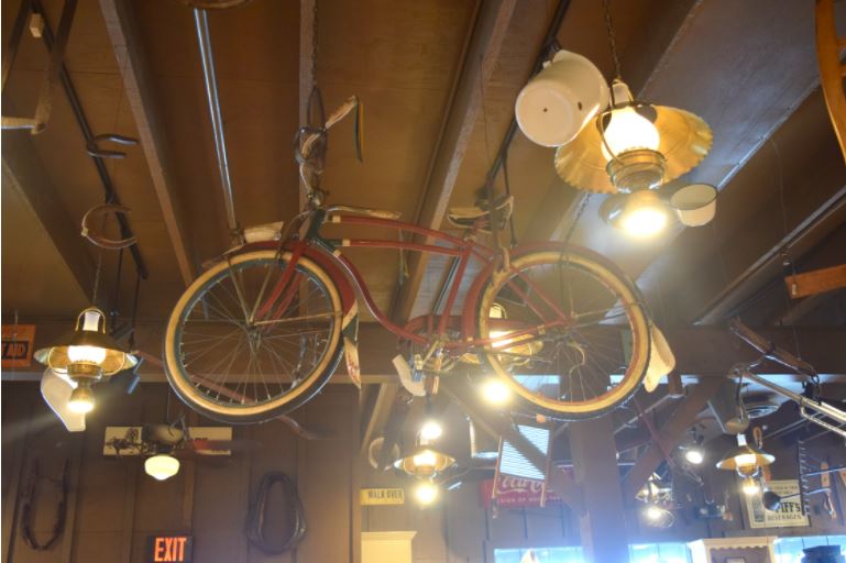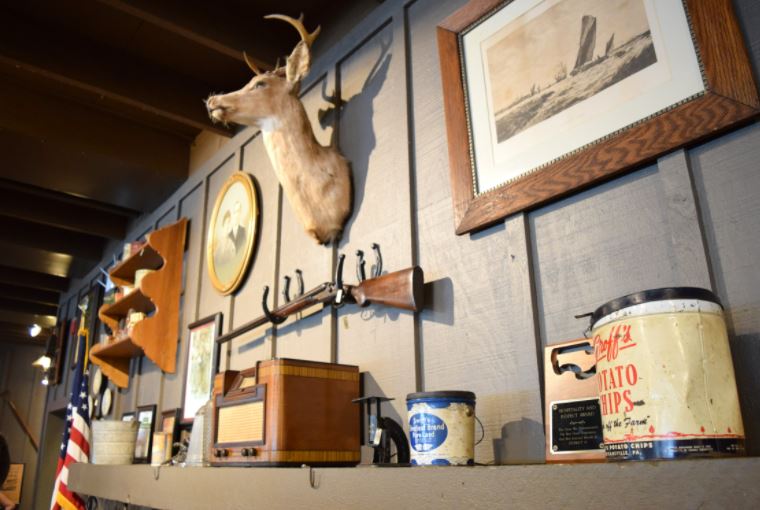A decoração do ambiente chama muita atenção. Pelas paredes há muitos quadros, cabeças de animais, itens de cozinha, armas e muito mais. É uma coisa "bem fazenda", sabe? :)