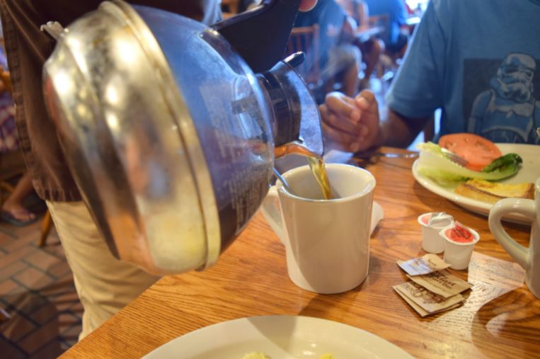 O café preto é servido logo que senta-se à mesa e é "refil". Valor: U$ 2.19 Valor sujeito à alteração sem aviso prévio.