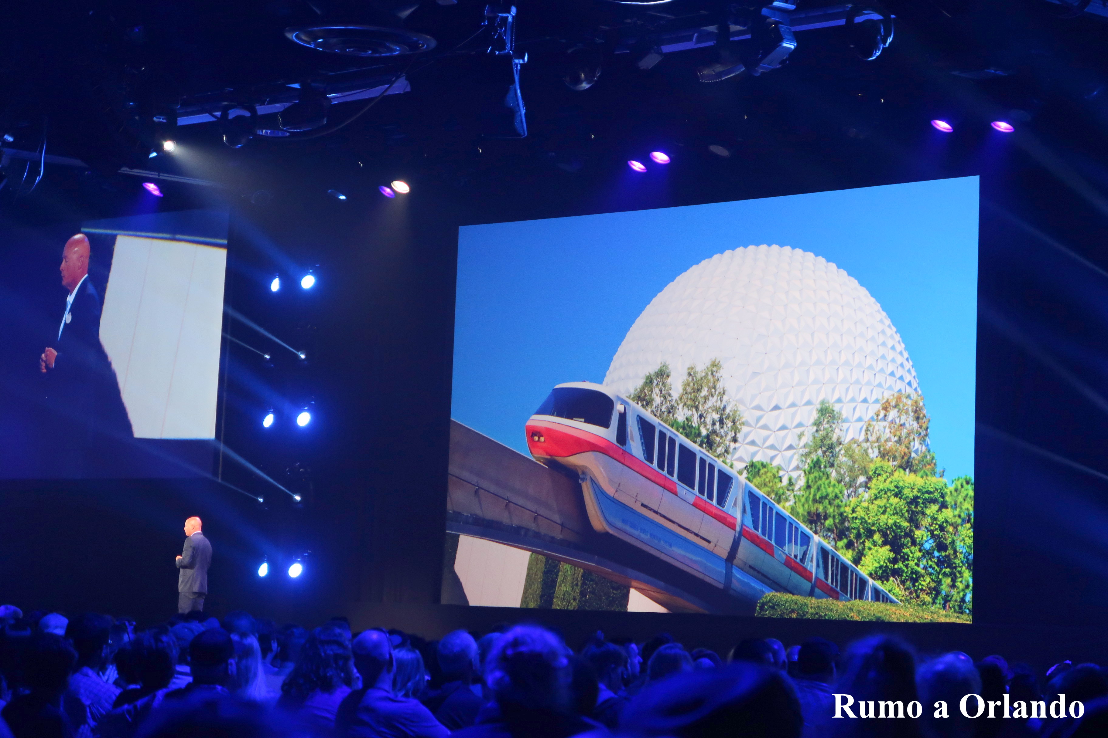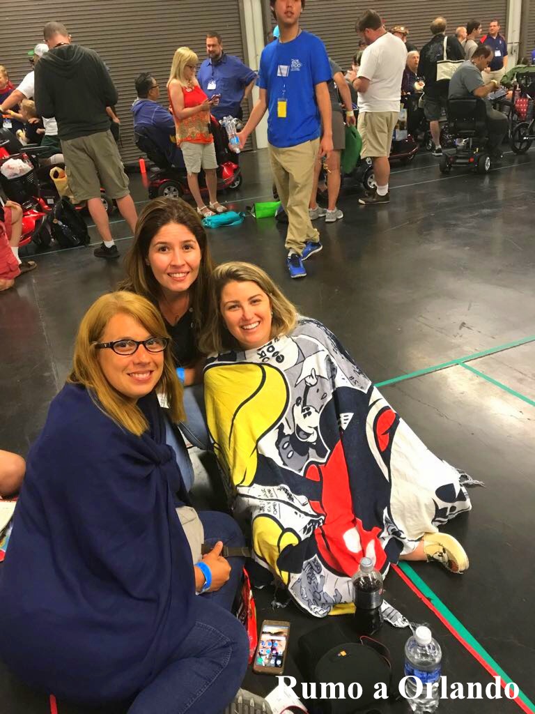Este era o mais importante para a gente e já tínhamos nossos assentos garantidos. Lembra da confusão na fila do painel da tarde anterior? Então, a Disney deu uma pulseira azul para todos que não conseguiram entrar e esta pulseira garantia o acesso ao painel dos parques e resorts. Mas, ainda assim, queríamos ir cedo para não correr riscos.