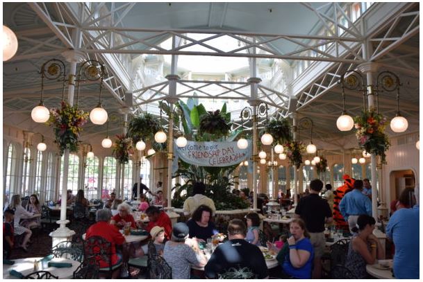É importante ficar de olho no relógio e planejar muito bem o seu dia no parque, pois a refeição no The Crystal Palace é demorada (gasta-se cerca de uma hora e meia dentro do restaurante) e pode ser que você tenha que deixar de ir a alguma atração por causa disso, caso o parque esteja cheio.