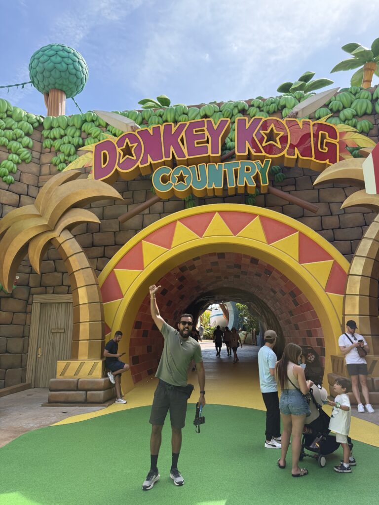 Na parte do Donkey Kong Country, os visitantes exploram a exuberante paisagem tropical dessa série de videogames, cheia de árvores altas, cachoeiras, pontos famosos como o Templo Dourado e mais.