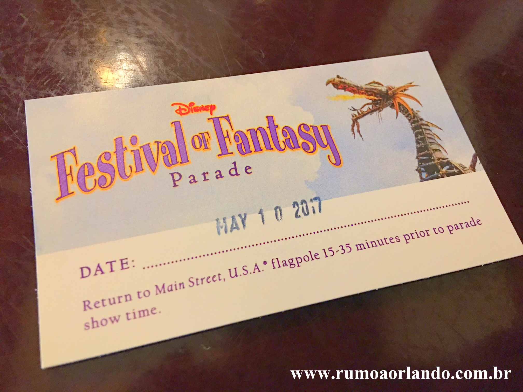Para quem não deseja chegar com esta antecedência toda ao local do desfile, a Disney passou a oferecer desde o dia 10/10/16 o Festival of Fantasy Parade Dining Package, que é um pacote que dá direito a uma refeição em um restaurante selecionado e local privilegiado para assistir à parada.