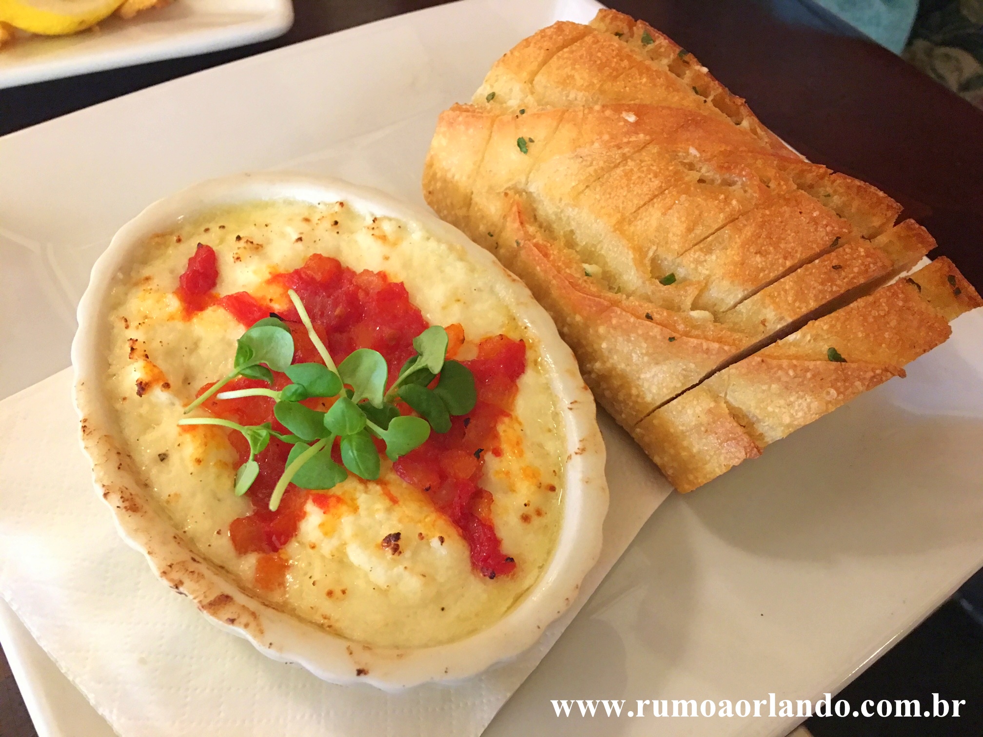 Descrição: molho italiano de queijo - ricota cremosa com alho assado, coberta com geleia de tomate, servida com crostini.