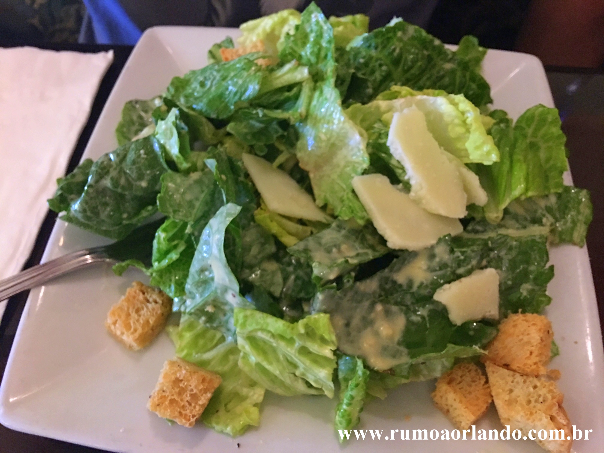 Descrição: salada caesar com raspas de queijo romano e croutons da casa.