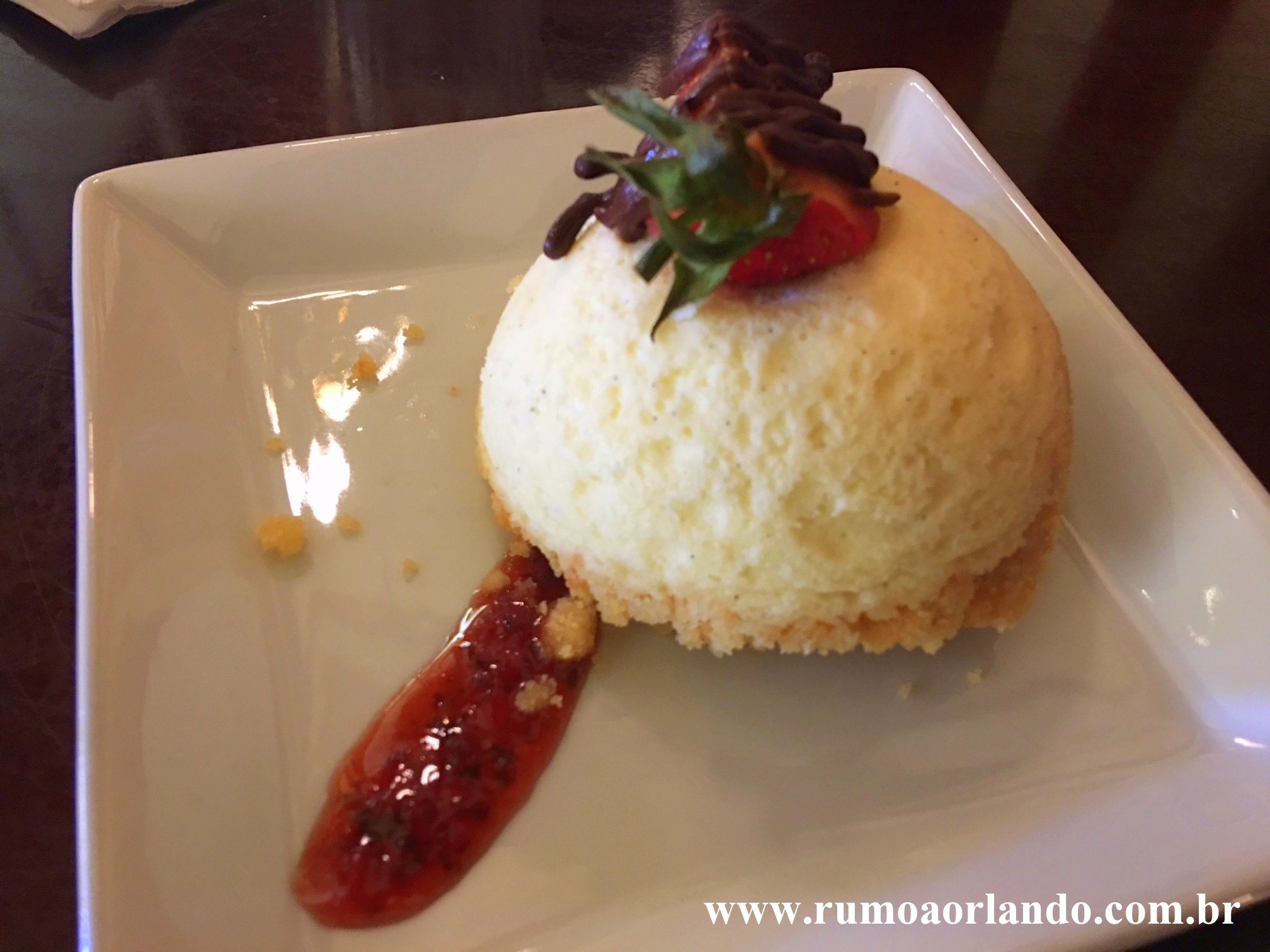 Descrição: Cheesecake da estação - no dia da nossa visita, o sabor disponível era baunilha com morango.