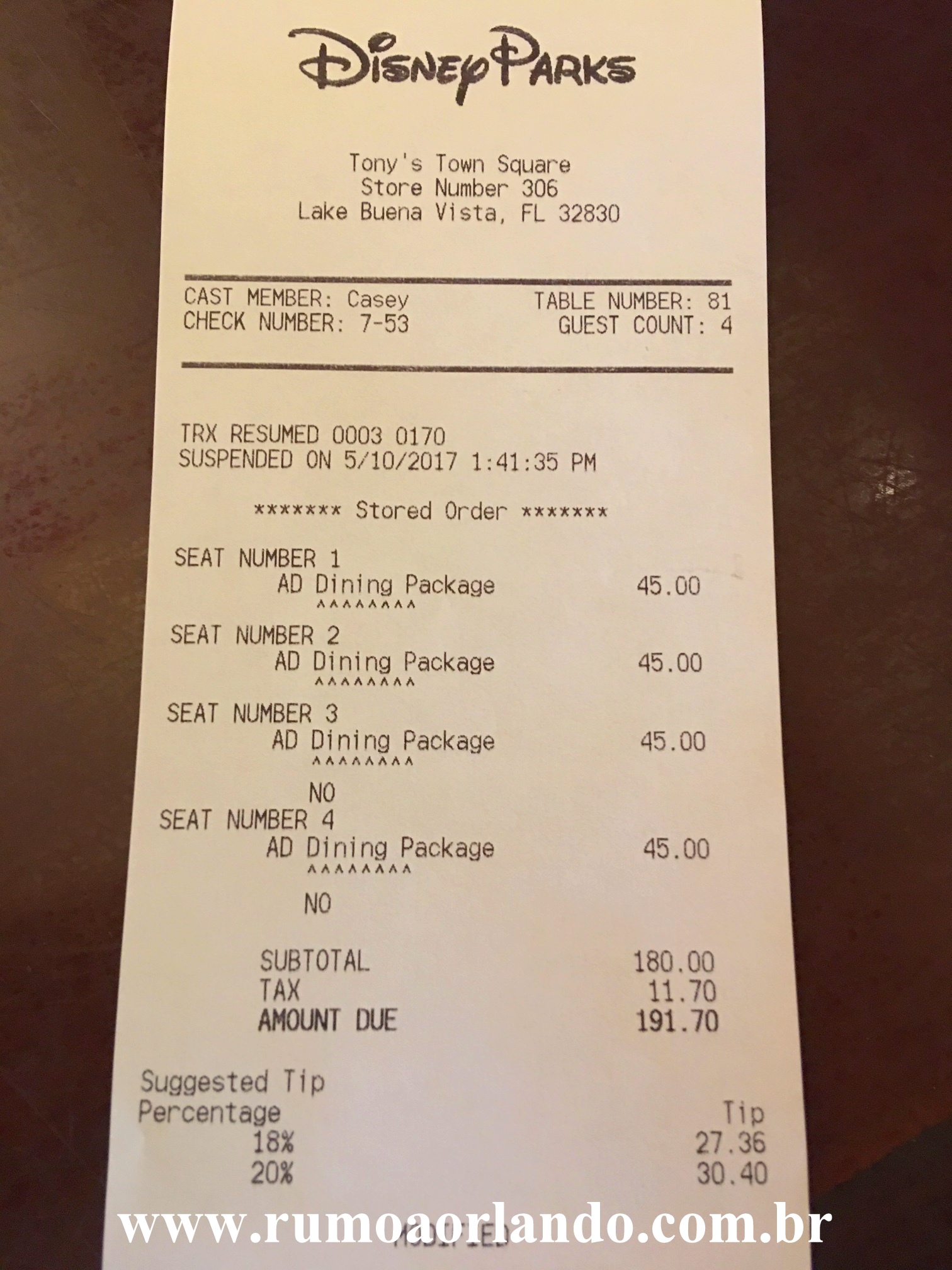 Para participar, é preciso reservar um almoço no restaurante Tony's Town Square, que fica logo na entrada do parque, bem ao lado do encontro com o Mickey Mágico.