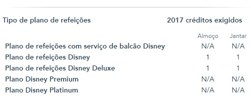 Caso você faça parte do Dining Plan, o Plano de Refeições da Disney, confira abaixo a quantidade de créditos exigida.