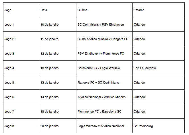 A programação completa dos jogos está disponível abaixo e também no site www.floridacup.com.