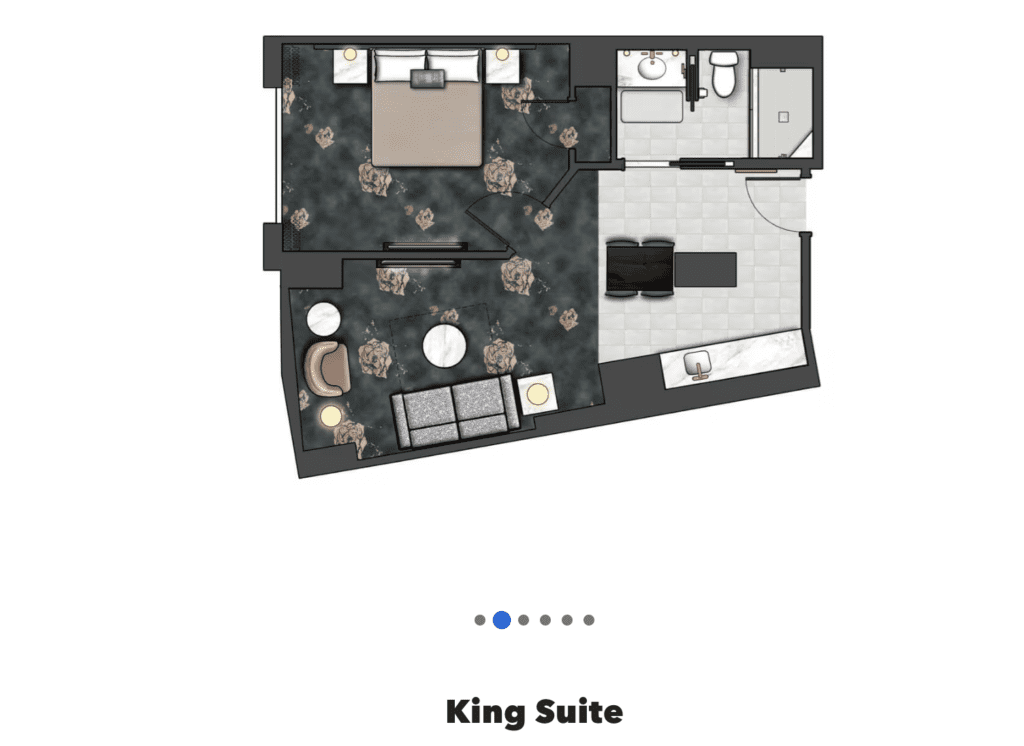 Já as Suítes acomodam até 4 pessoas também (é possível pedir 1 com cama extra para uma quinta pessoa, porém é mediante taxa extra e disponibilidade), porém, elas possuem ambientes separados para pais e filhos, bem como infra-estrutura de mini-cozinha. Existem Suítes com o tema do filme "Como treinar o seu dragão".