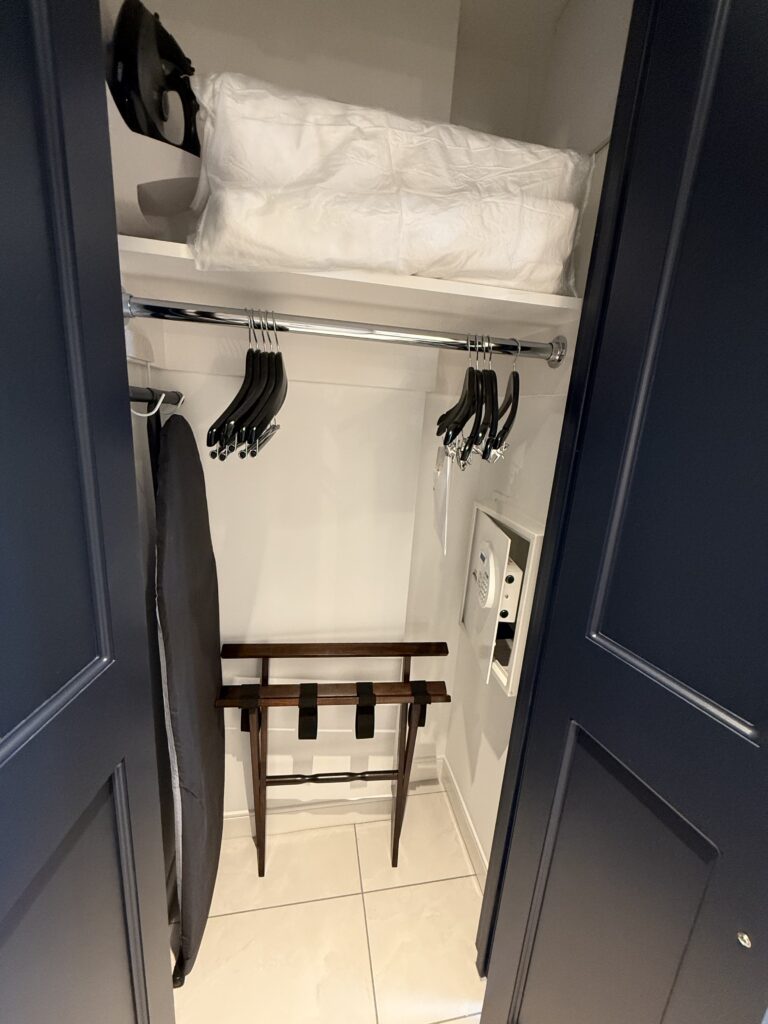 Todos os quartos são equipados com frigobar, cafeteira, controles por tablet para luzes, temperatura e TV, cofre digital, ferro e tábua de passar roupa, secador de cabelos e itens de higiene (shampoo, condicionados, sabonete). Você também vai encontrar Wi-Fi gratuito e tomadas USB em todos os quartos.