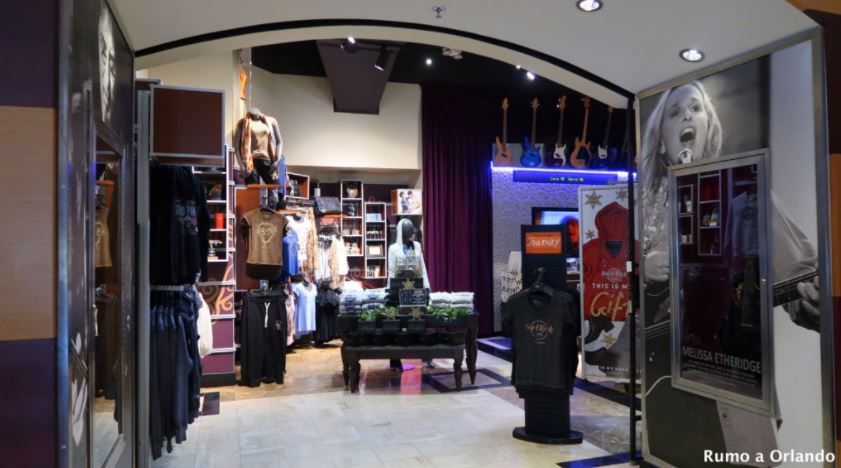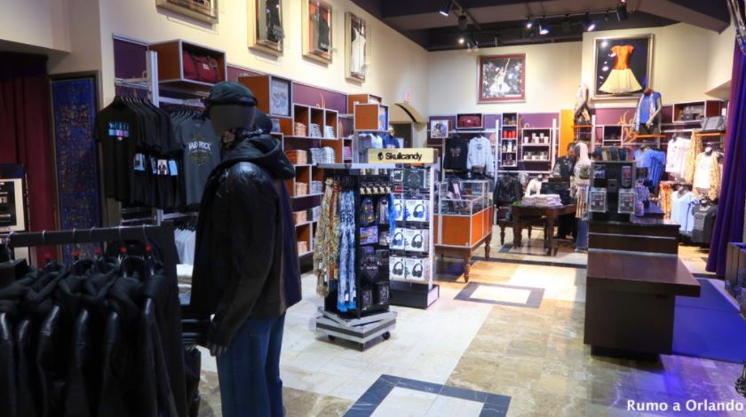E é no lobby que encontramos a Rock Shop, a lojinha do hotel, onde podemos comprar produtos exclusivos do resort, ótimo para quem quer levar um pedacinho do hotel para casa, especialmente as blusas e casacos com o logo "Hard Rock Orlando", febre nos anos 90.