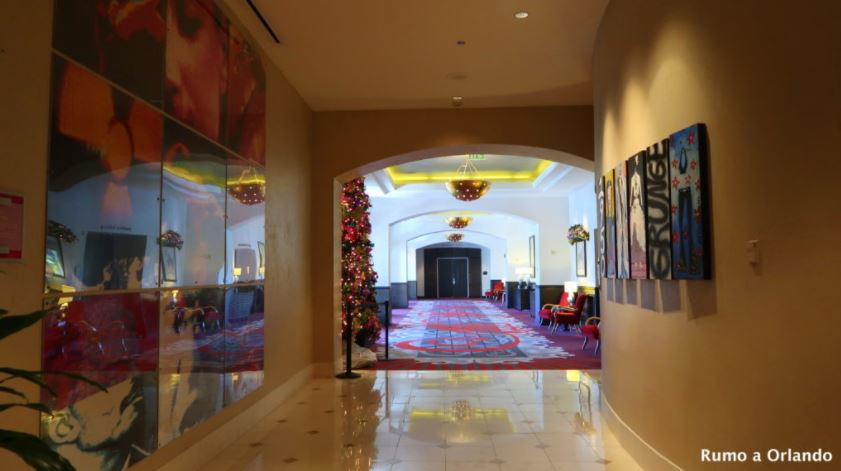 Já no lobby do hotel podemos ver que ele é ricamente decorado e cada cantinho foi carinhosamente pensado para agradar amantes da música.
