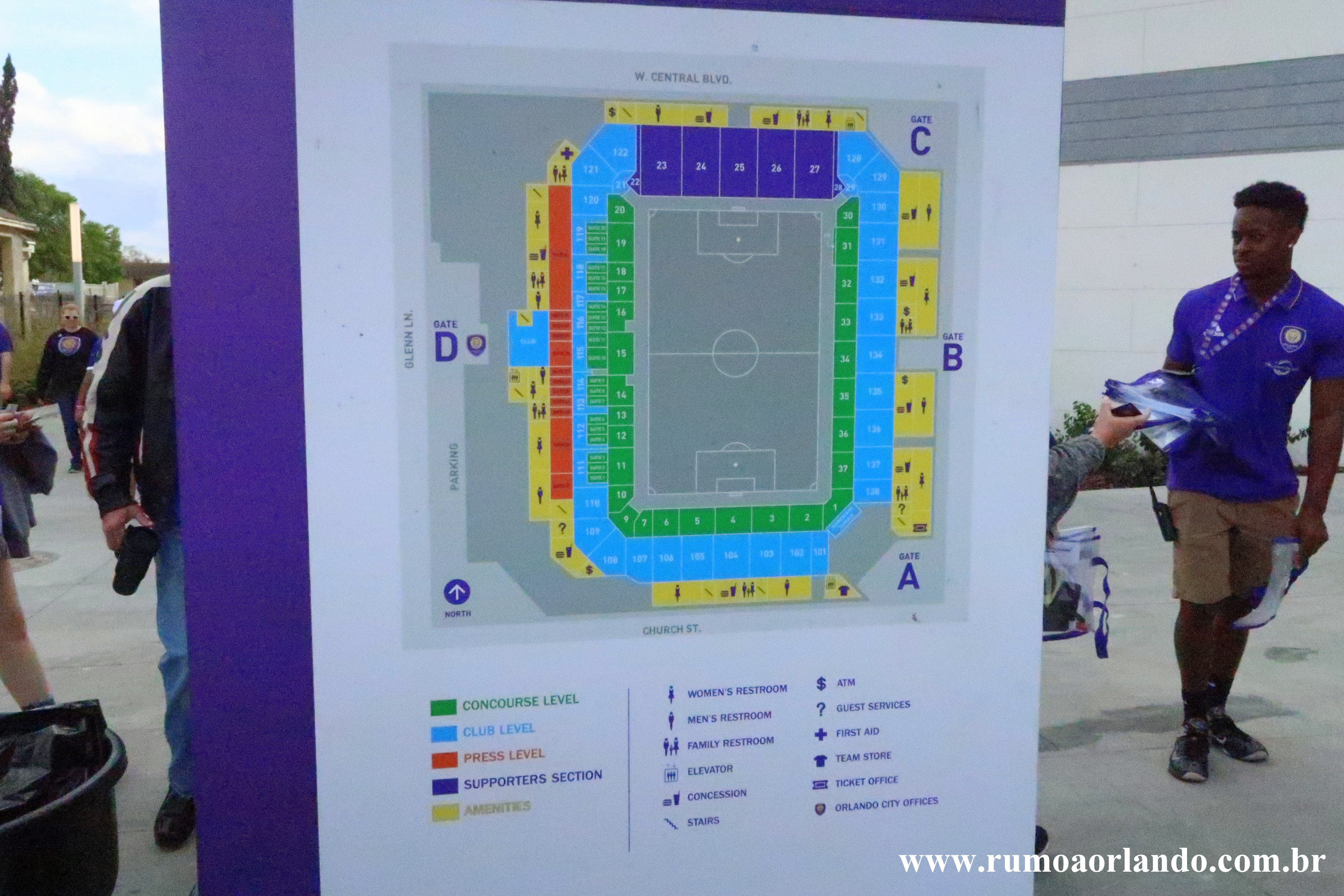 O estacionamento do estádio é o Orange Lot, que fica na 522 West Central Boulevard, Orlando, FL 32801. Para mais informações sobre rotas, acessos e mapas do local, clique aqui. Se quiser reservar seu estacionamento com antecedência, clique aqui.
