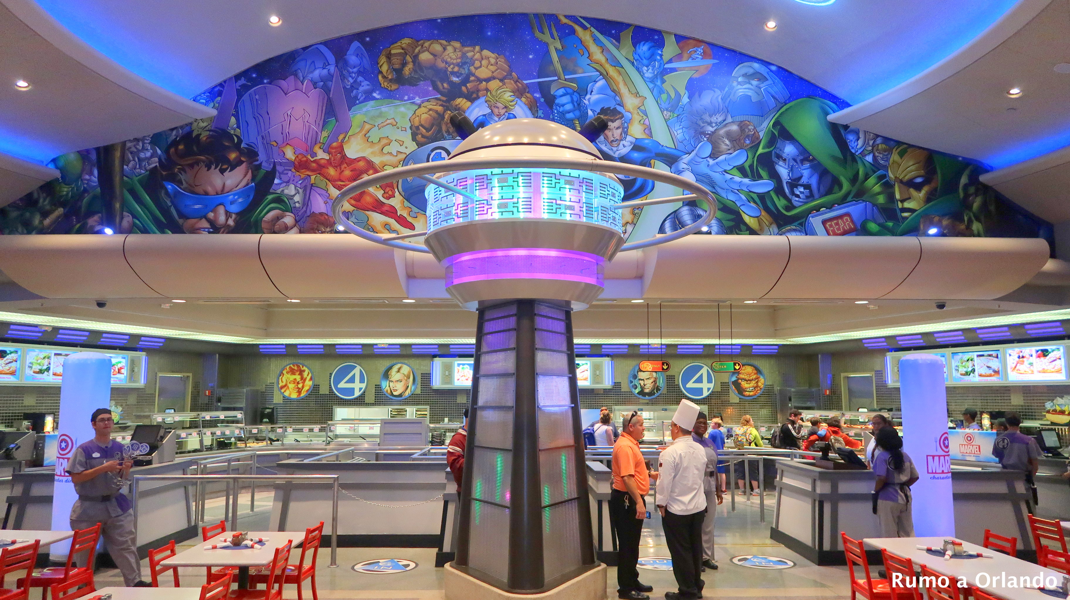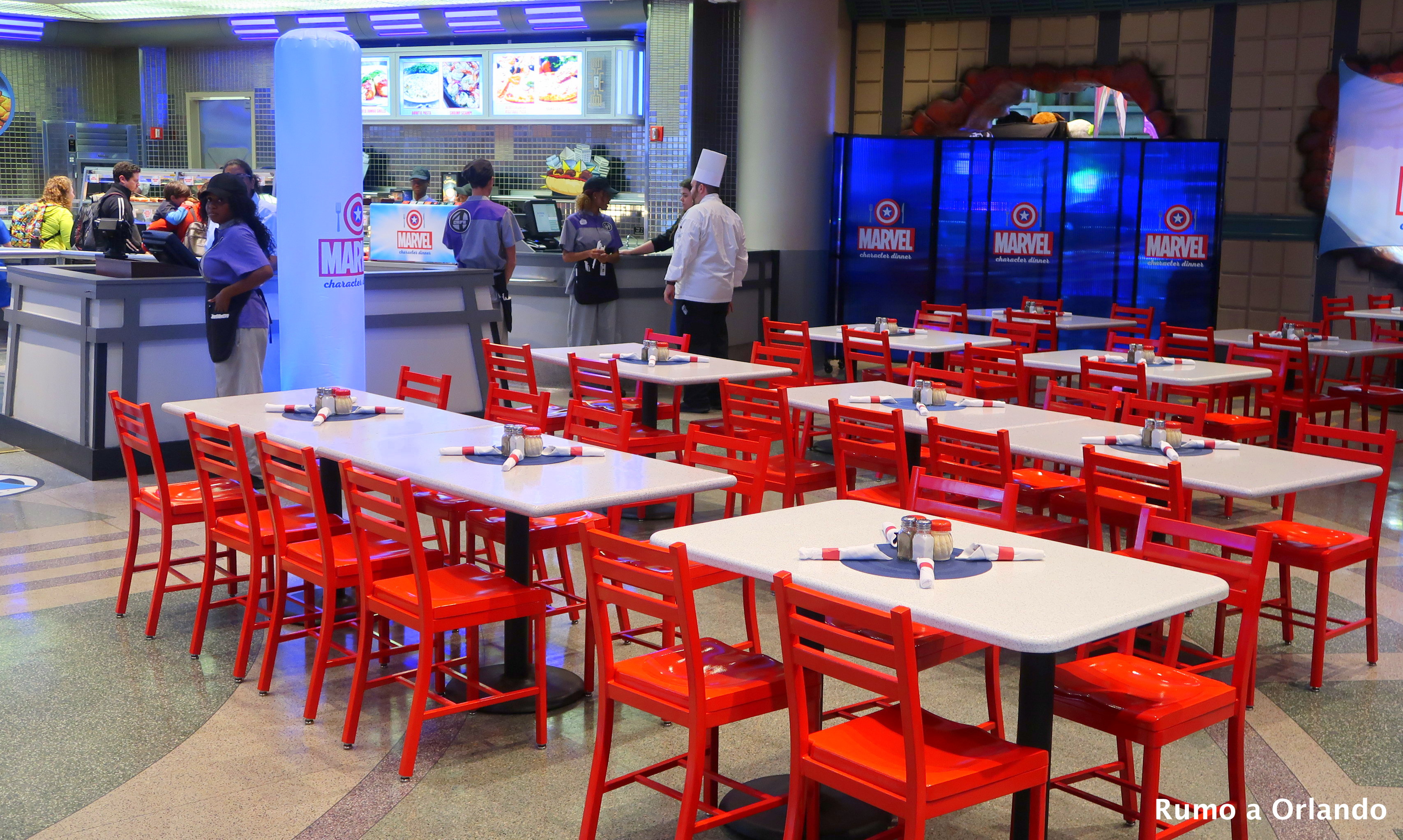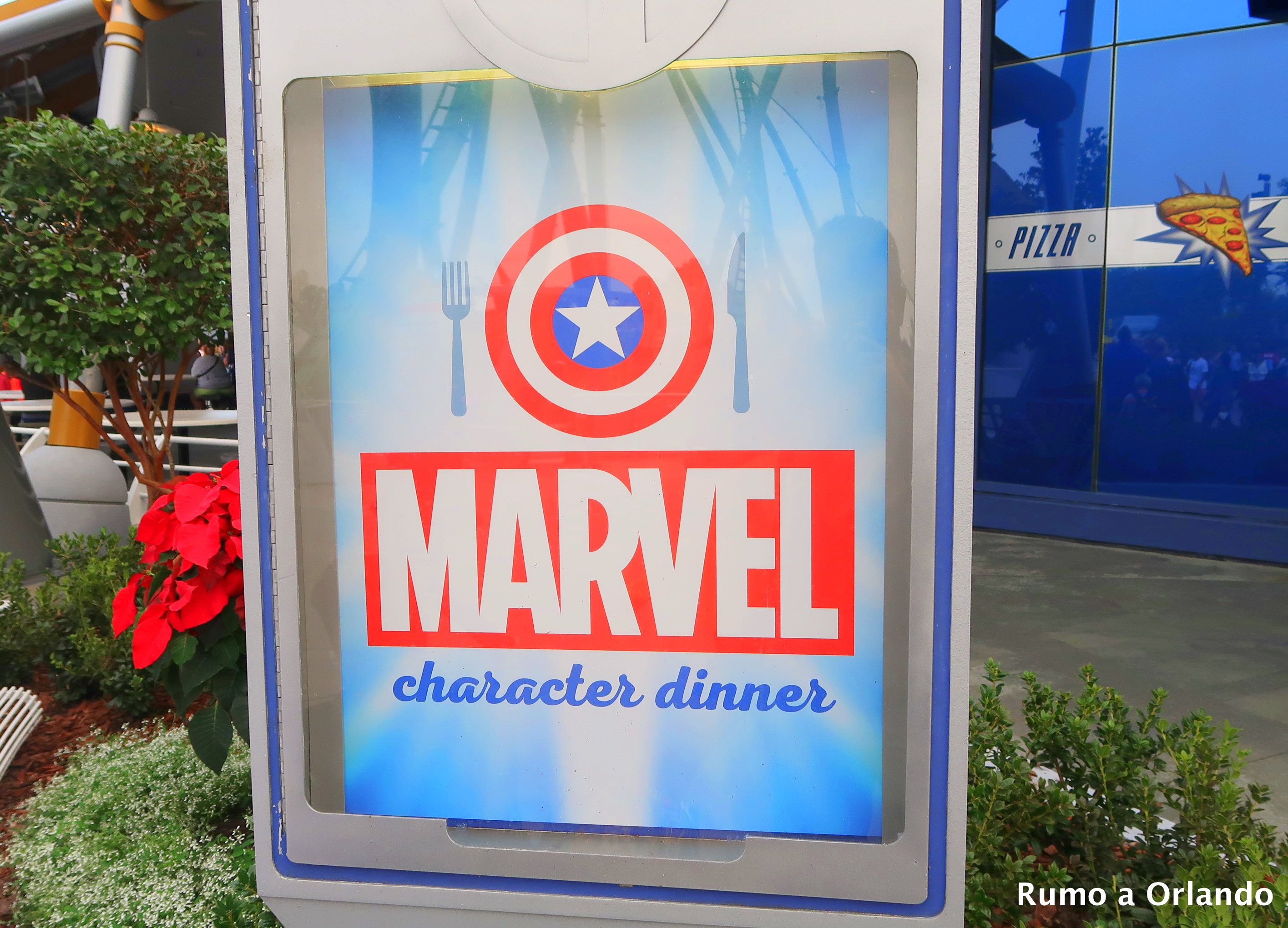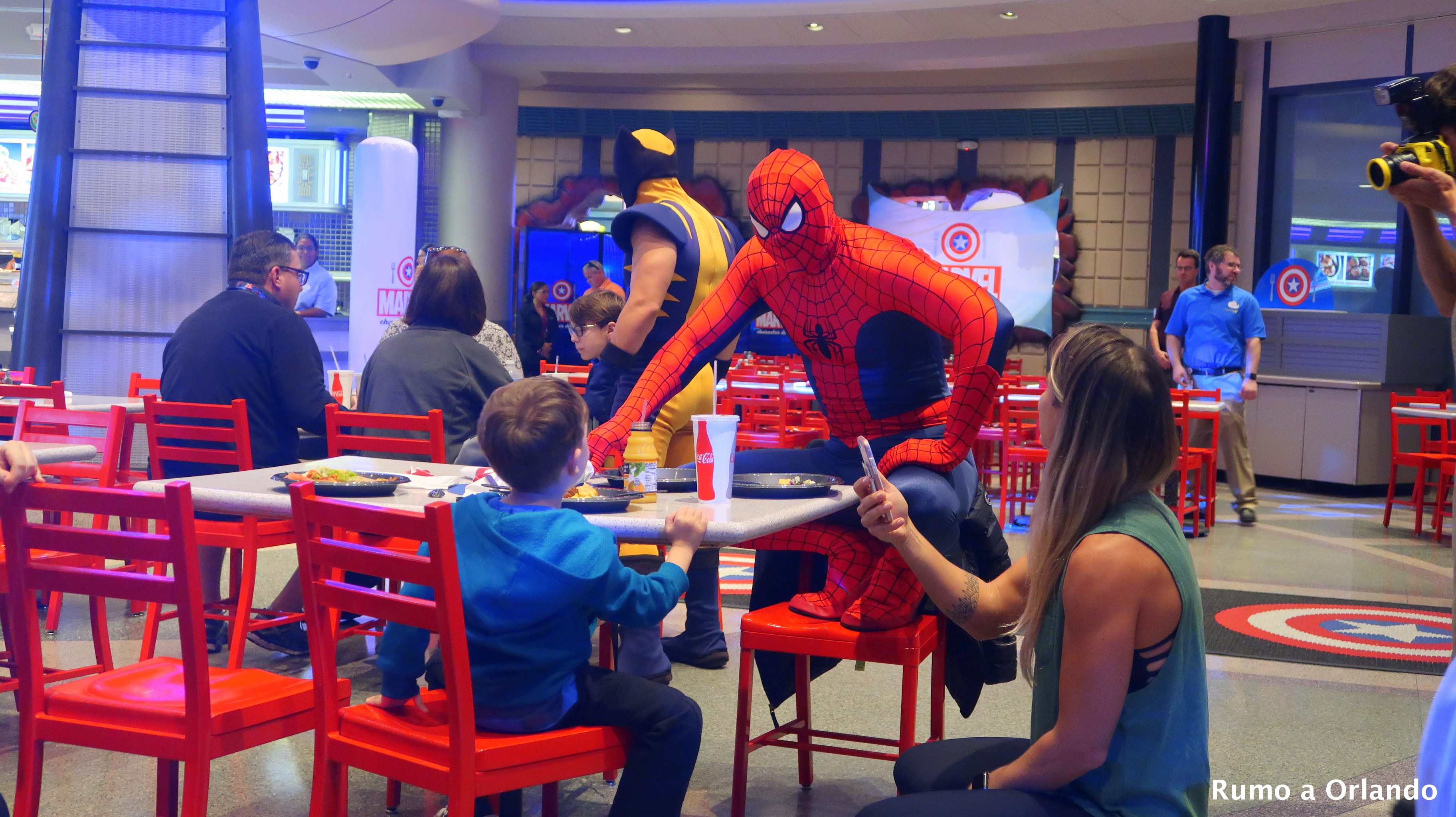 A refeição acontece no restaurante Cafe 4, localizado na área Marvel Super Hero Island, dentro do parque Islands of Adventure.