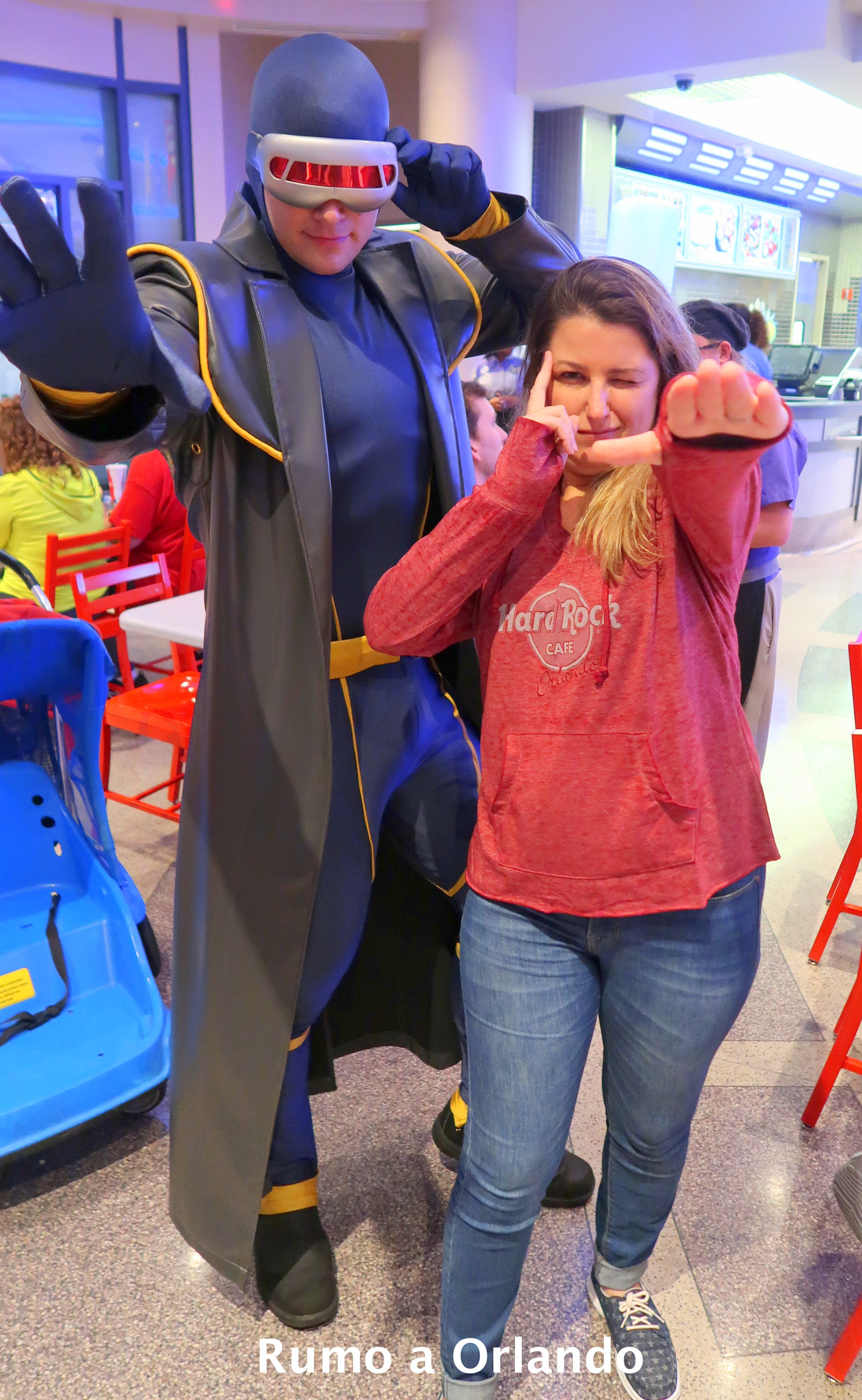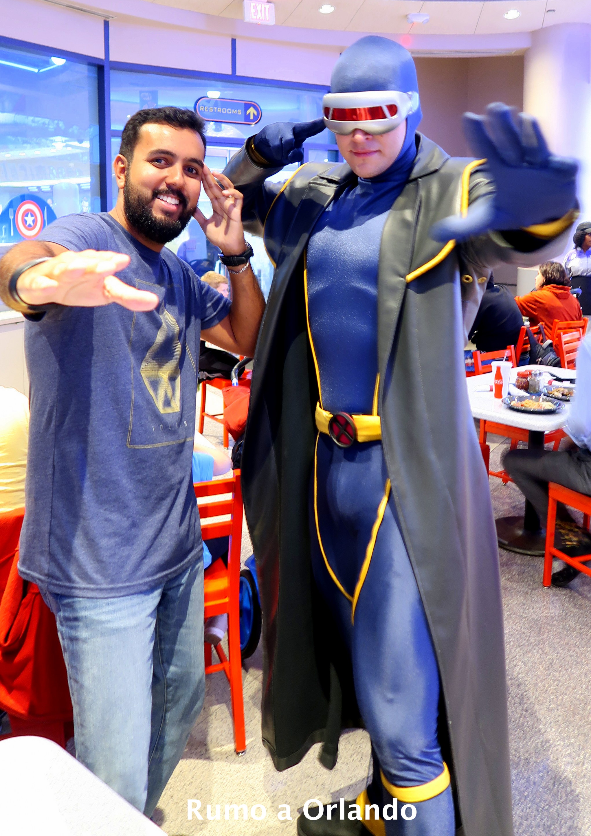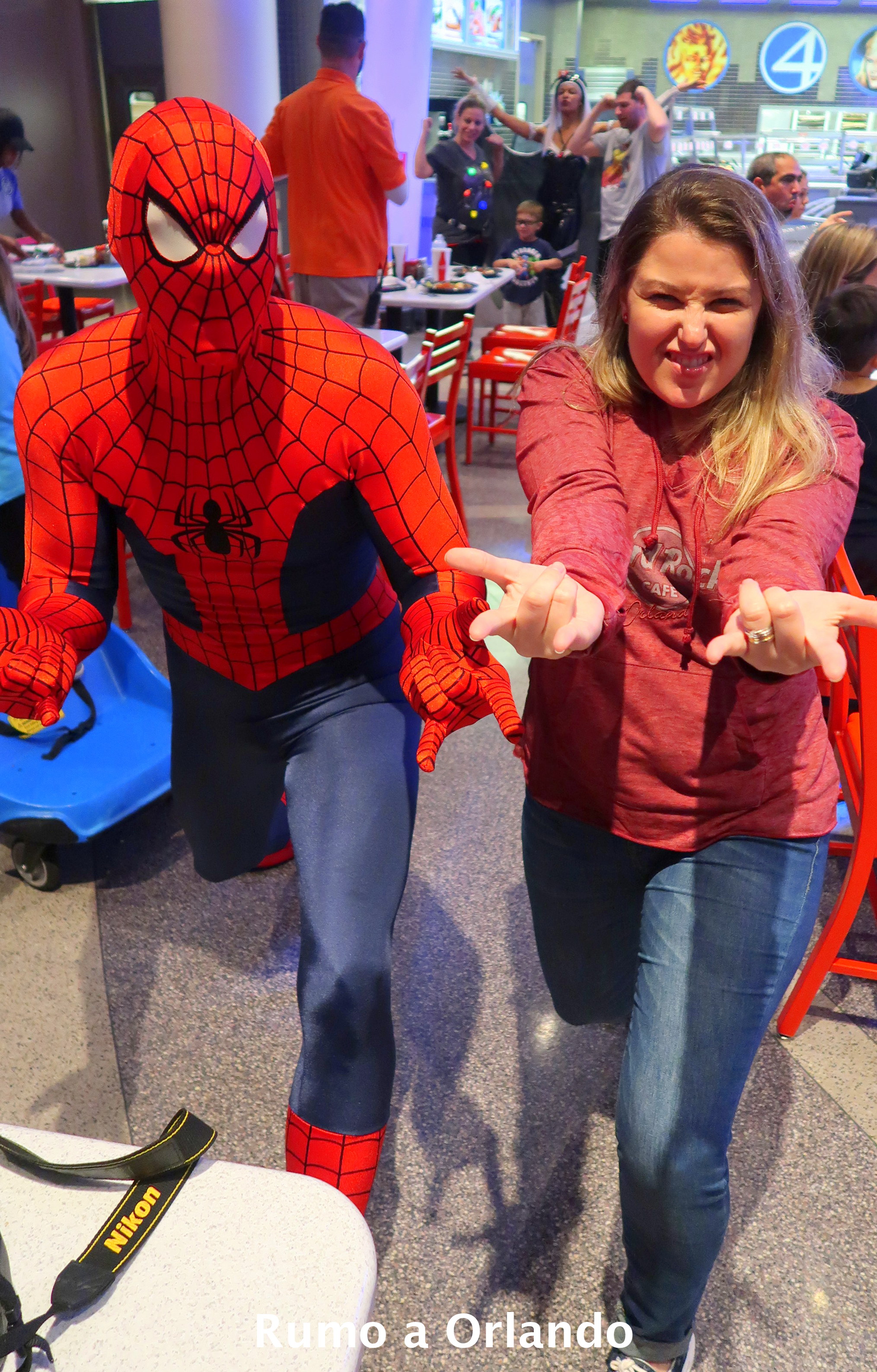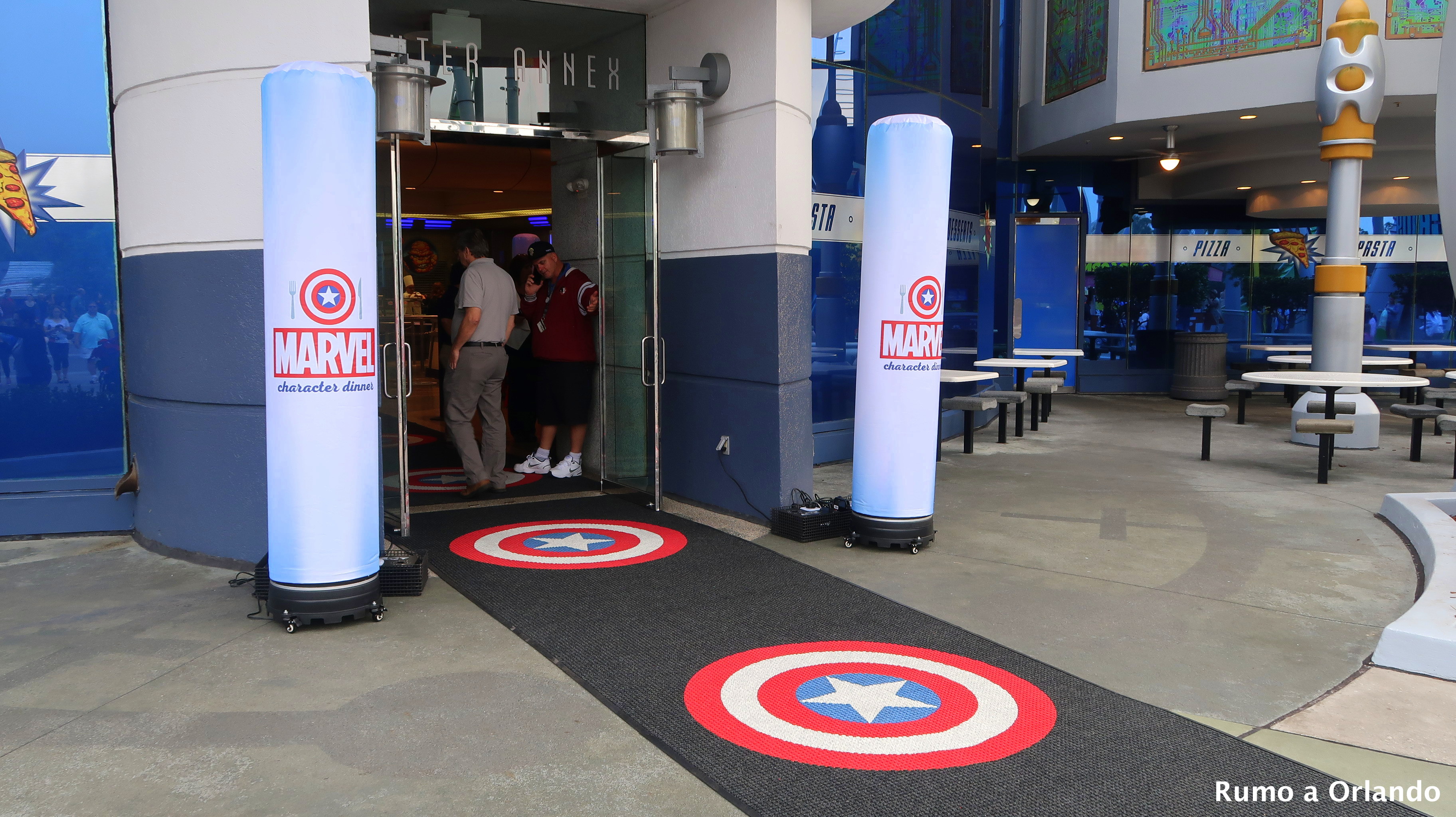 A refeição acontece no restaurante Cafe 4, localizado na área Marvel Super Hero Island, dentro do parque Islands of Adventure.