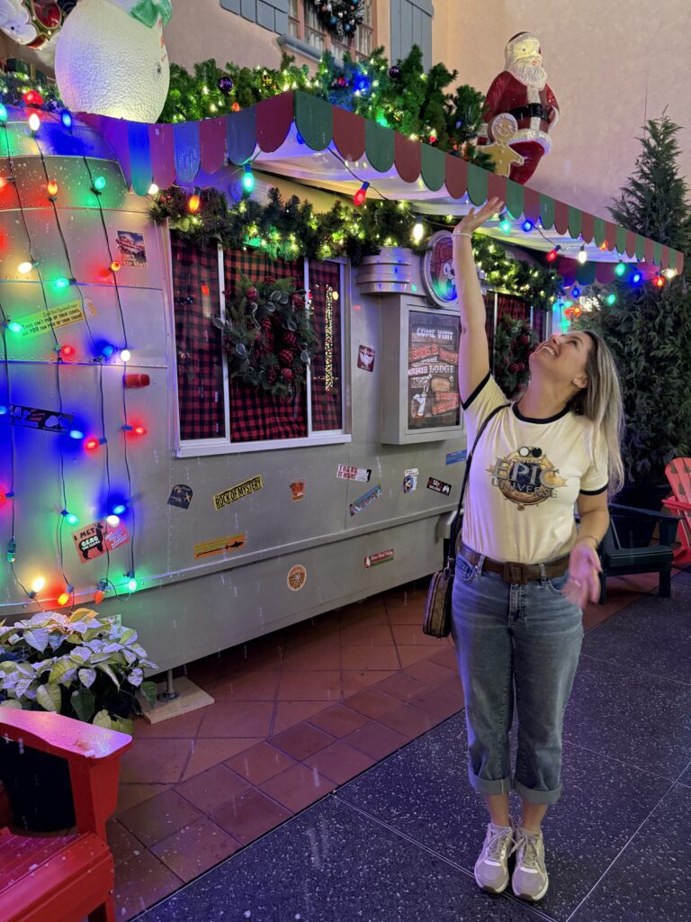 De 21/11/25 o dia 04/01/26, quem for visitar o complexo da Universal vai poder conferir as experiências de Natal, que já são inclusas no ingresso regular.