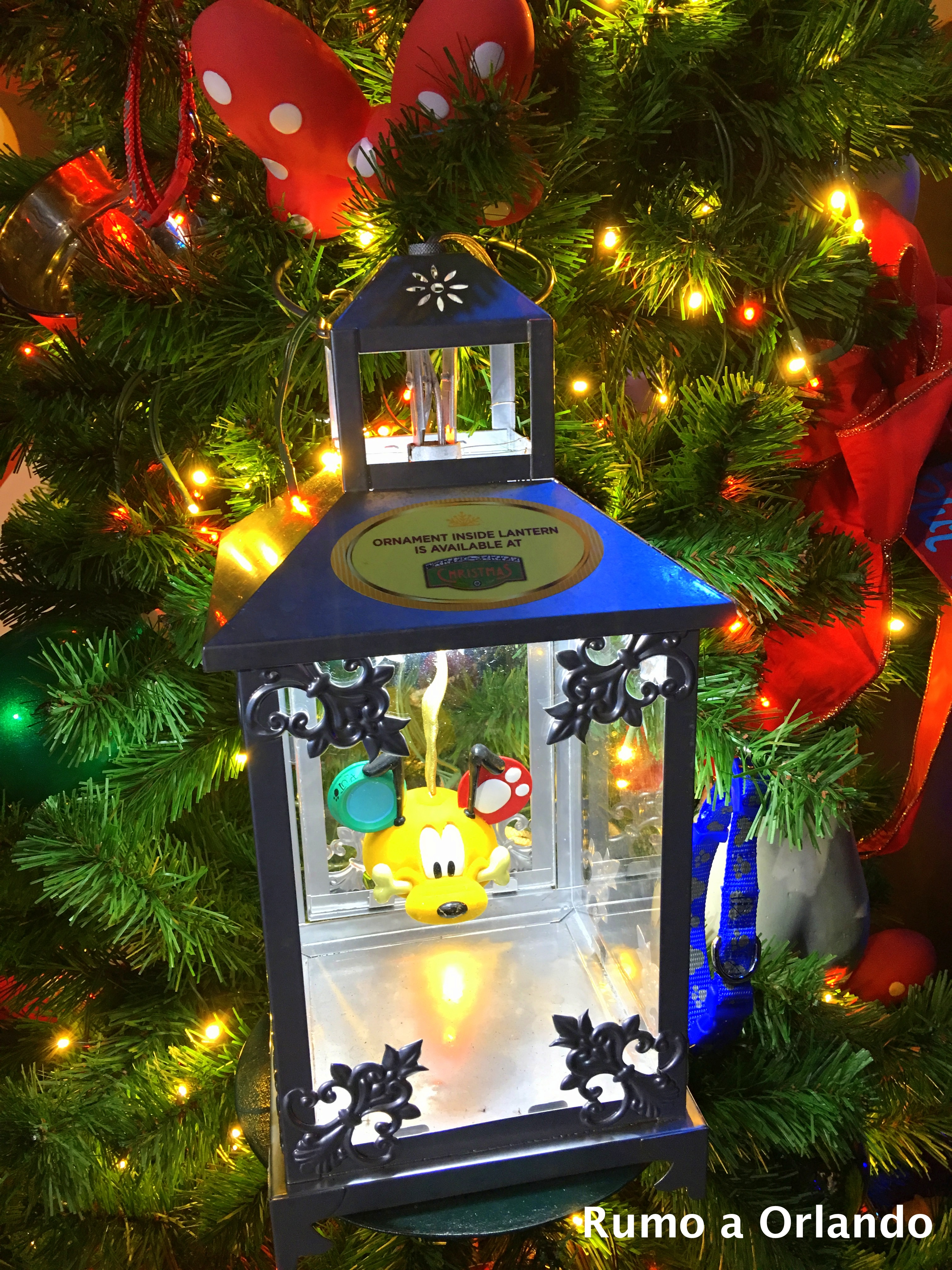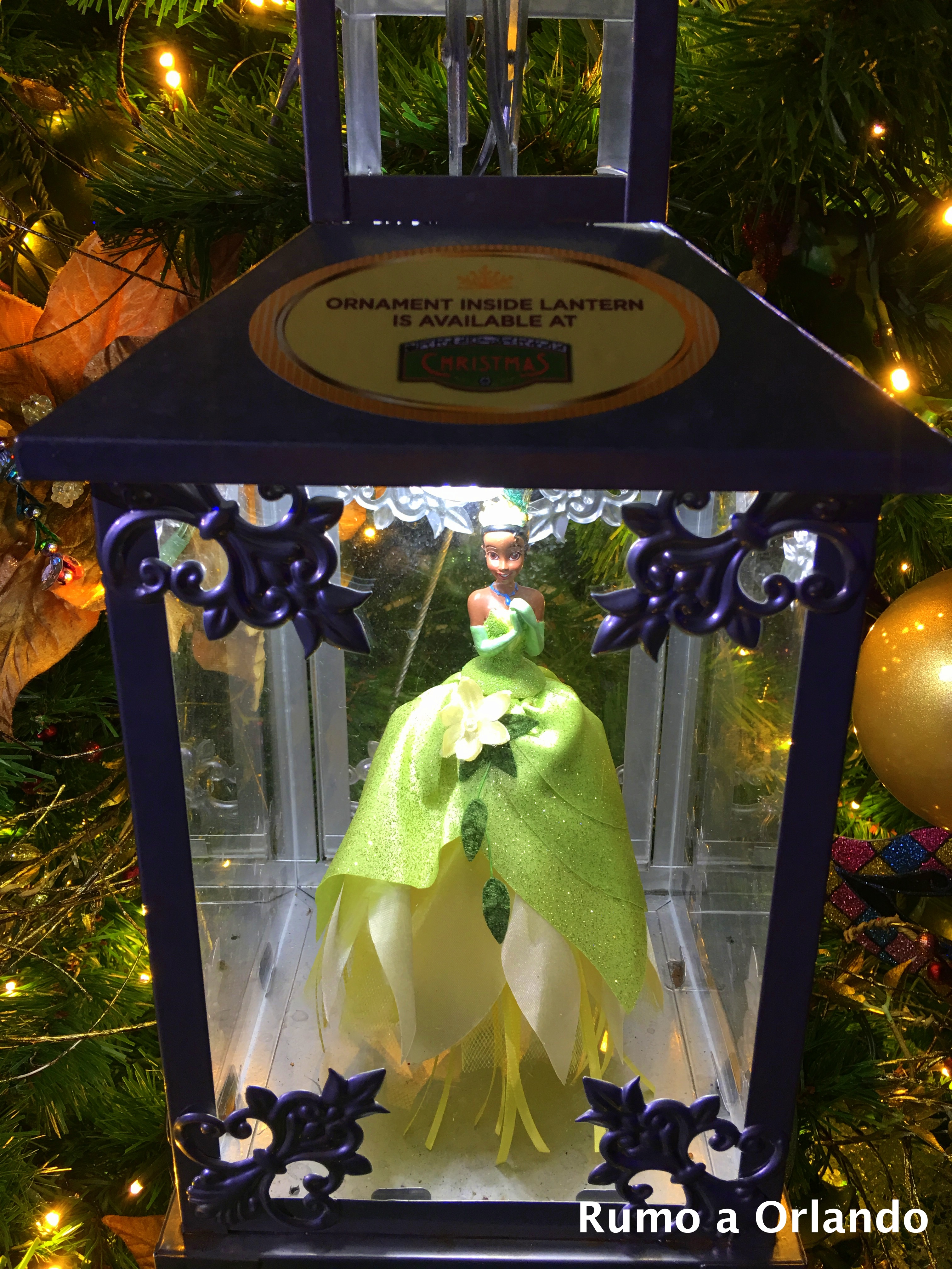 Repare que, em todas elas, há ornamentos de Natal que são vendidos nas lojas dos parques e há uma plaquinha dizendo onde você pode comprá-los ali mesmo, em Disney Springs.