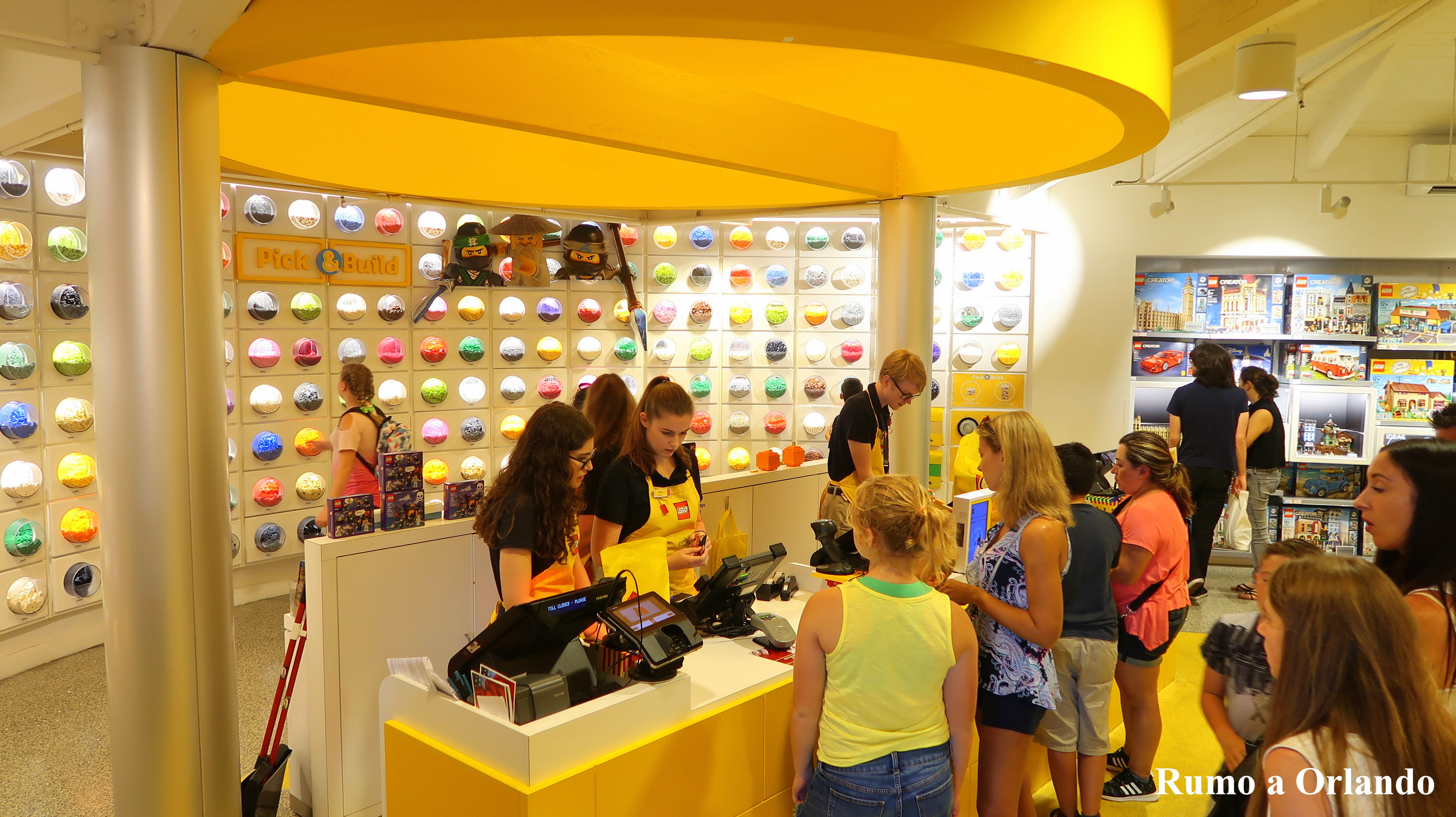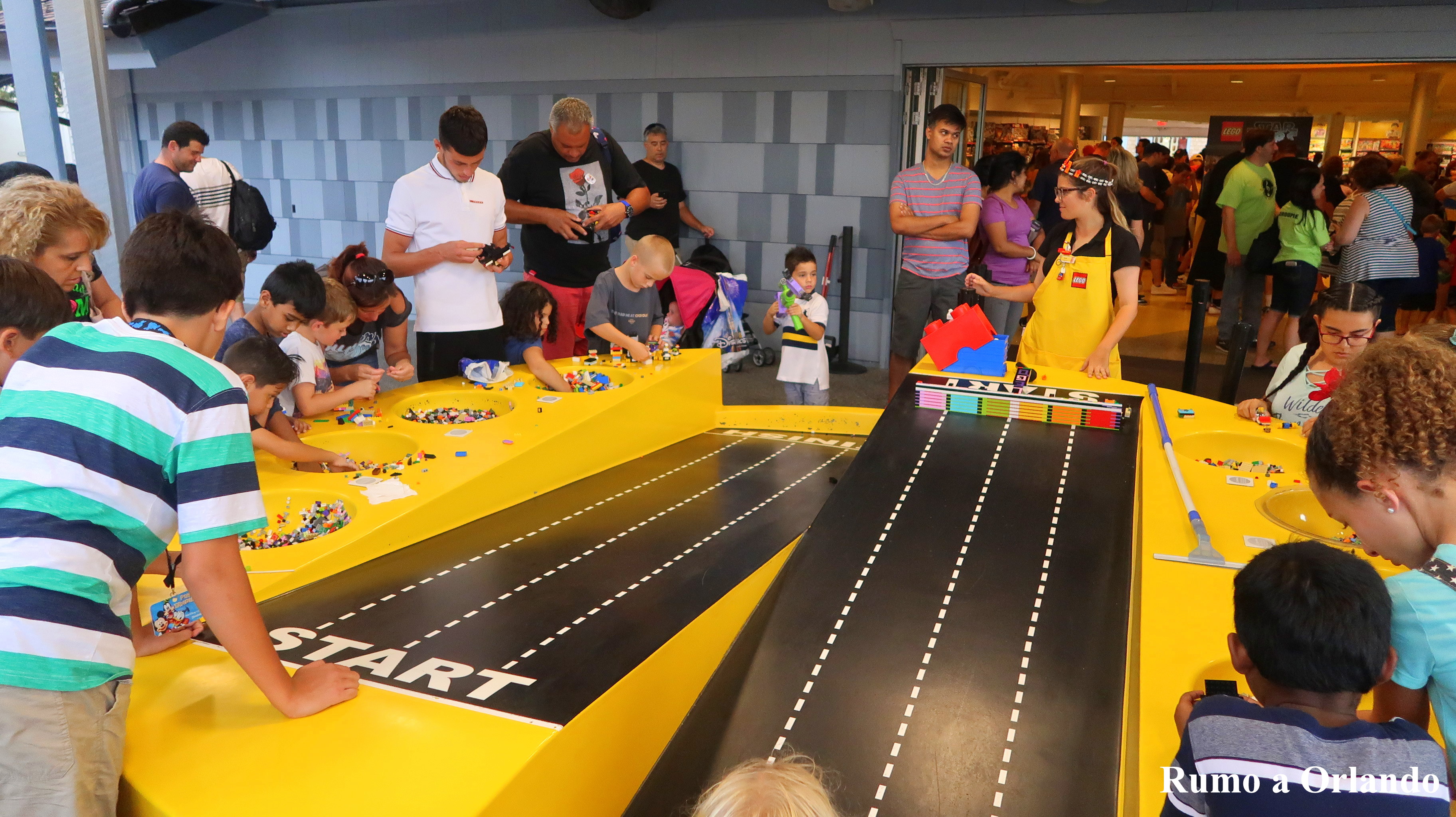 A loja fica em frente à World of Disney e uma das coisas mais bacanas que ela oferece é a possibilidade das crianças (e adultos também, why not? rsrs) ficarem brincando com as peças por toda a loja.