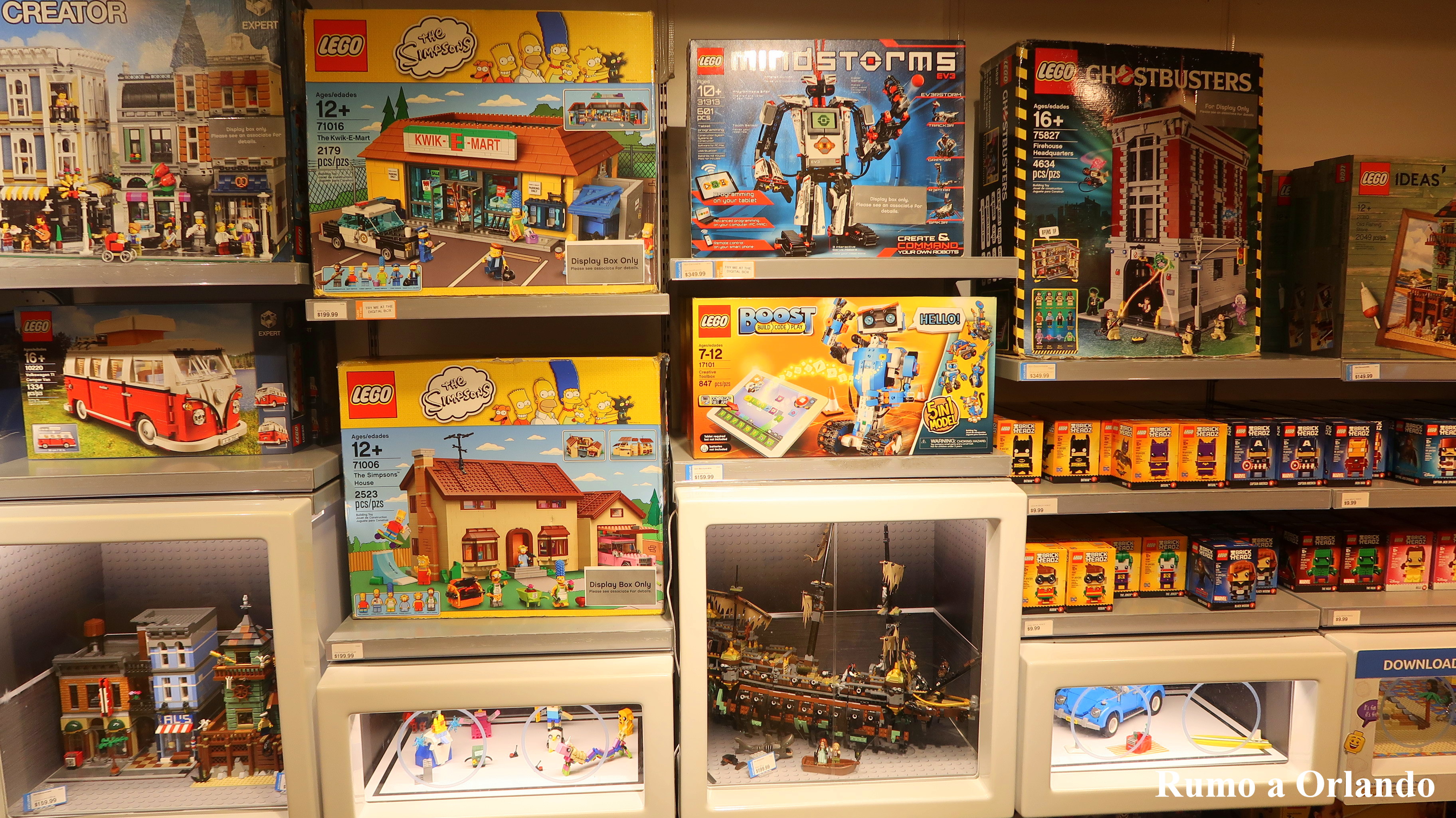 As coleções mais novas concentram-se em lojas próprias da Lego, que em Orlando, são encontradas em Disney Springs e no próprio parque da marca, o Legoland.