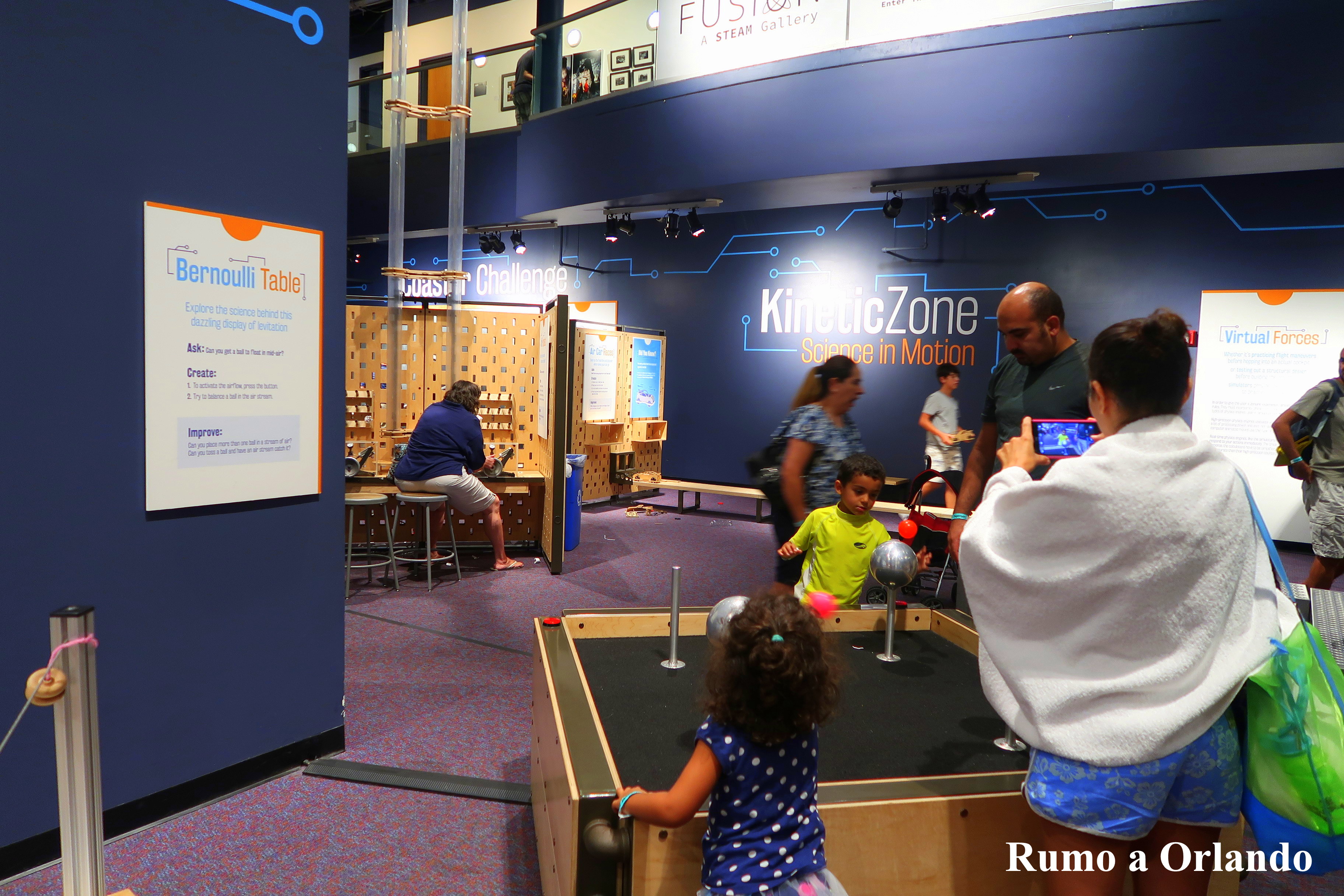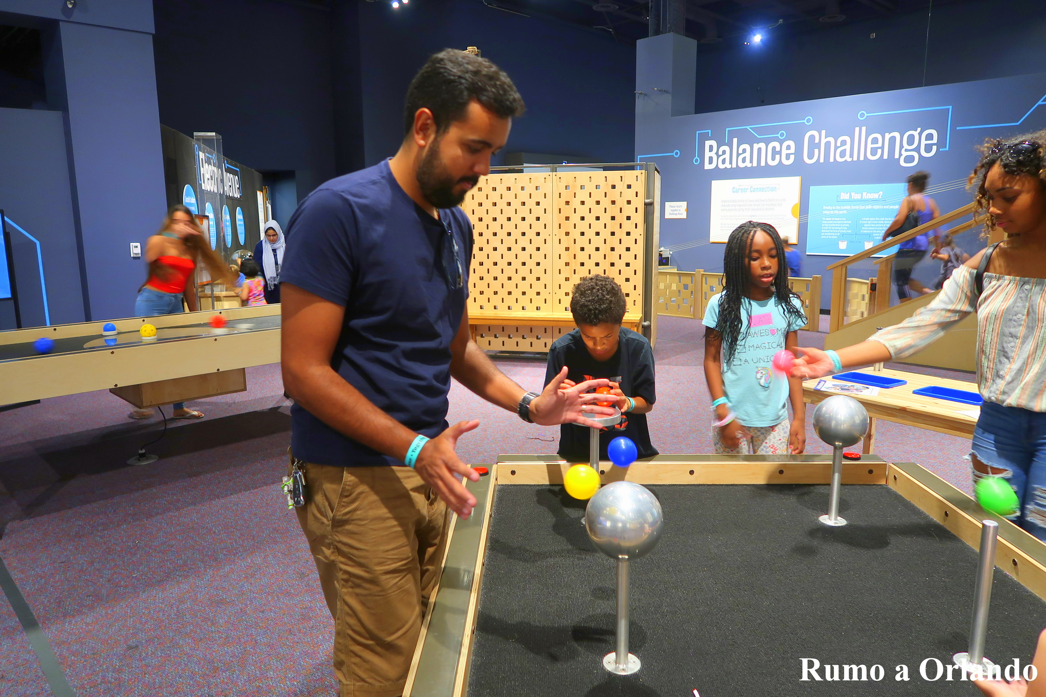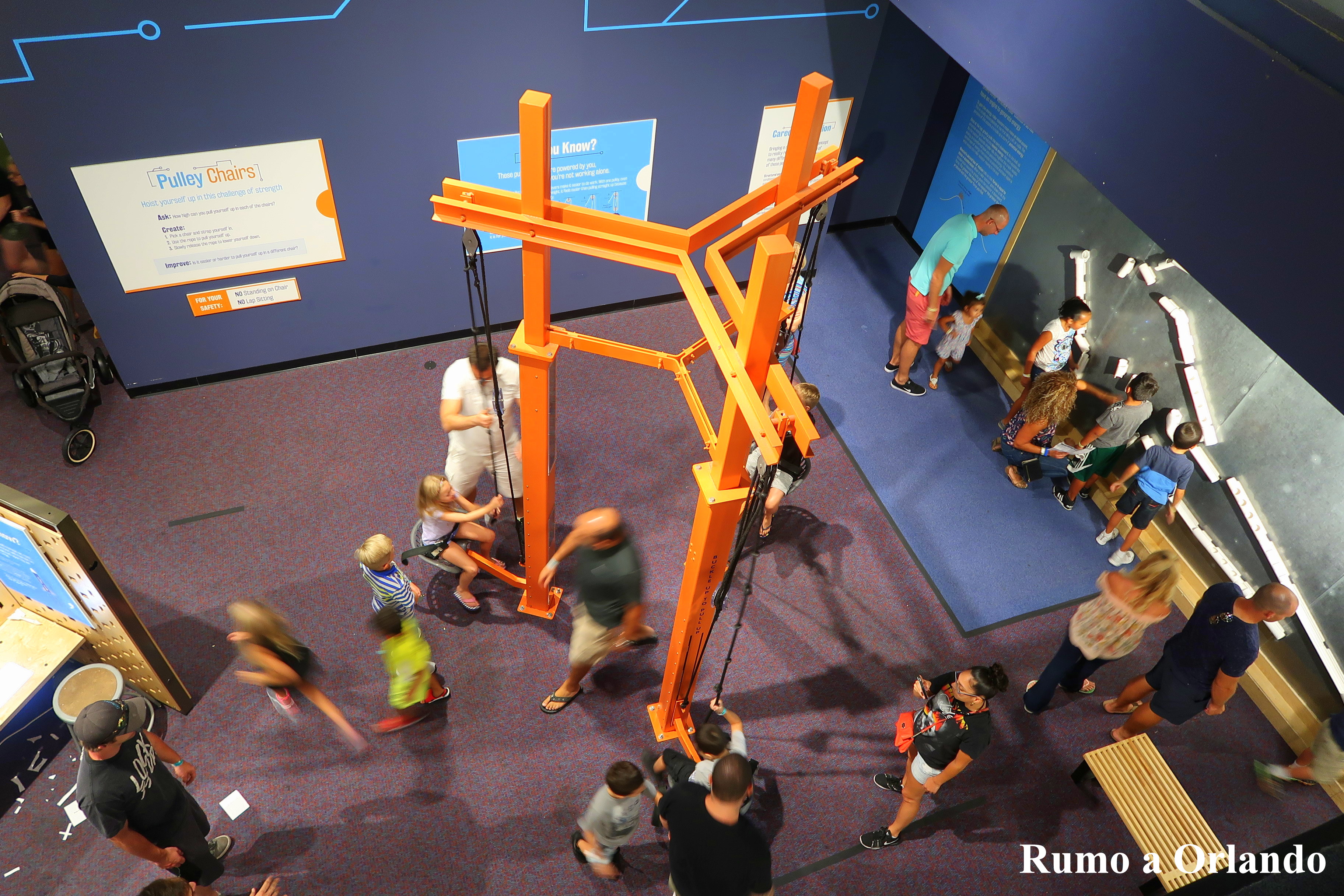 Ela mostra a ciência em movimento e ali podemos brincar com a gravidade, testar o peso e o balanço em uma espécie de tirolesa de copinhos, há desafios como reproduzir uma montanha-russa, há simuladores de voos de aviões e corrida de carros, e muito mais.