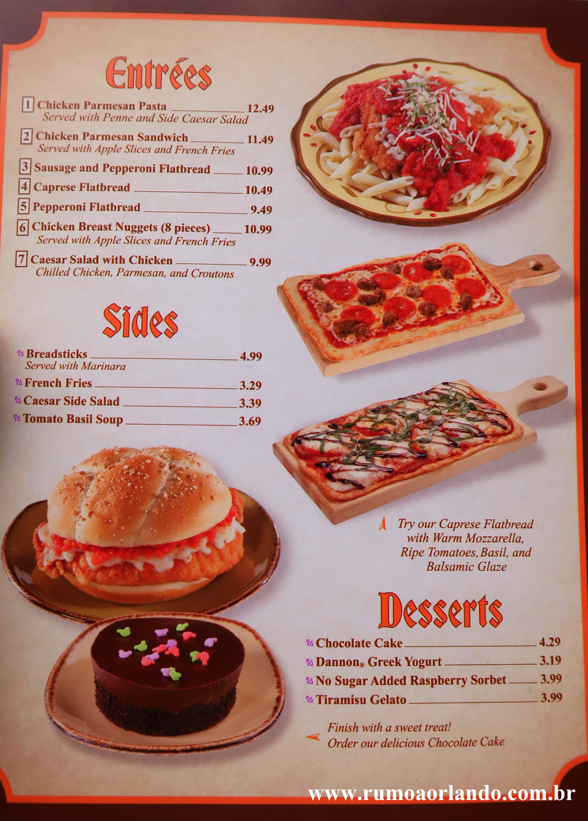 O atendimento dentro do restaurante é somente em inglês, por isso, estude o cardápio online em português antes para já chegar sabendo o que vai pedir. Nossa dica de prato, sem dúvida, são as Flatbreads, que são "pizzas" com a massa fininha e quadrada. Na realidade, tratam-se de massas de pão achatado. Há diversos sabores, como pepperoni, linguiça e caprese. Nossa preferida é a de pepperoni, pois é bem salgadinha e tem um toque apimentado leve. Os preços das Flatbreads variam de acordo com o sabor escolhido. A de pepperoni, por exemplo, custa cerca de U$ 11,99 (valor em 2020). O Plano de Refeições da Disney é aceito no Pinnochio Village Haus e requer 01 crédito de Quick Service. Saiba mais sobre como funciona o Plano de Refeições da Disney na prática: Uma curiosidade do Pinnochio Village Haus: ele esconde um segredo que muitas pessoas "passam batido". Dentro do restaurante há um livro de desejos, onde podemos colocar nossos maiores sonhos.