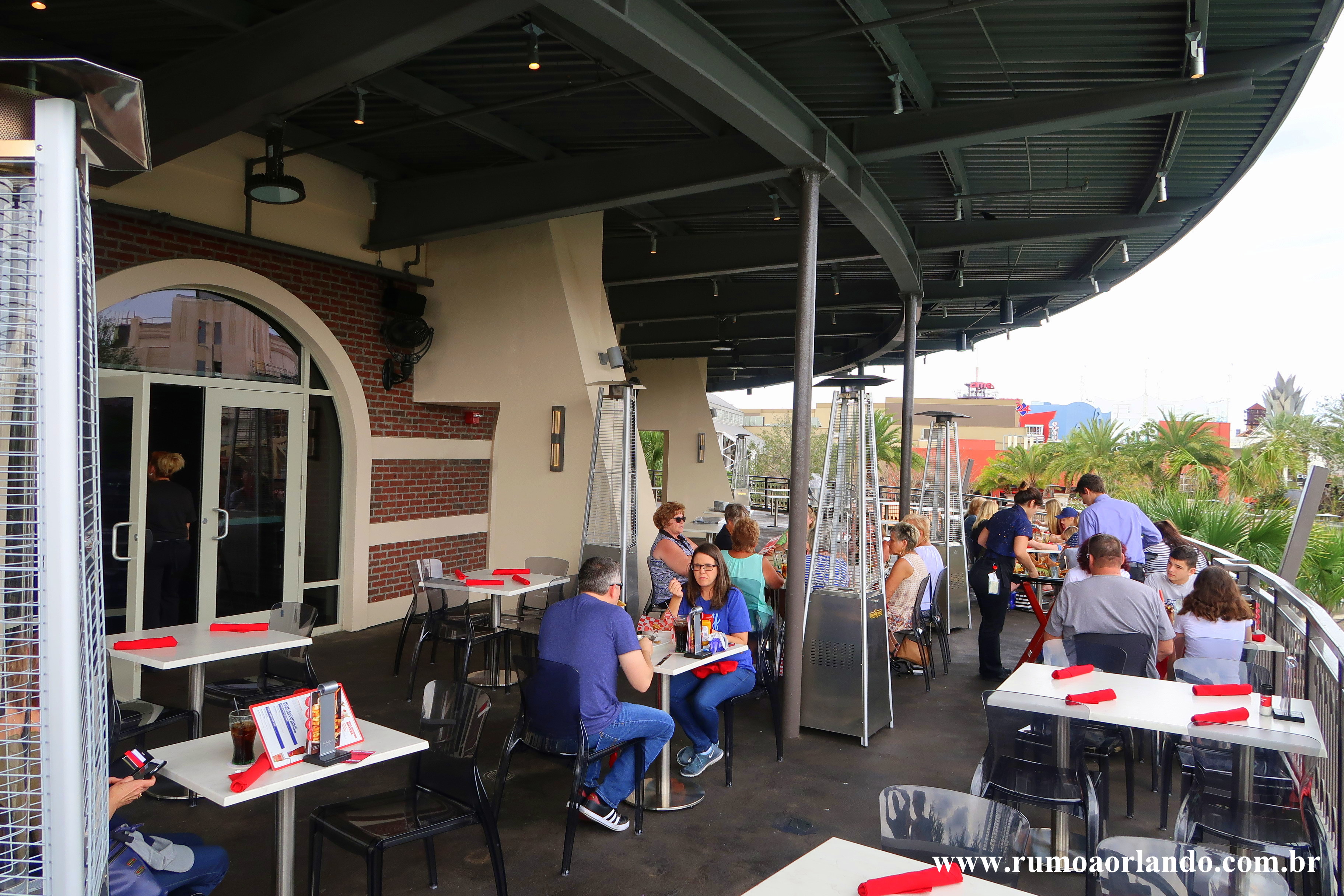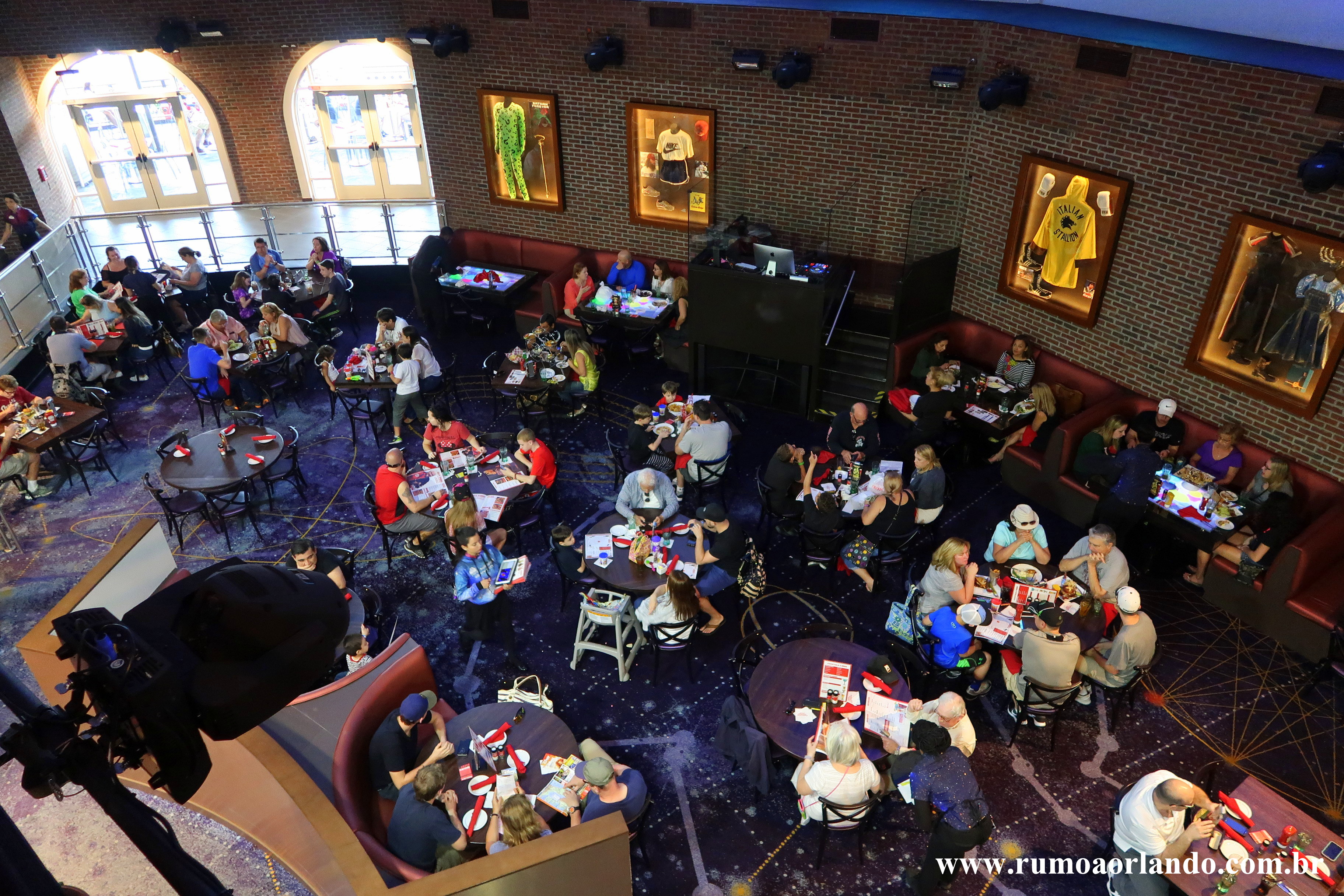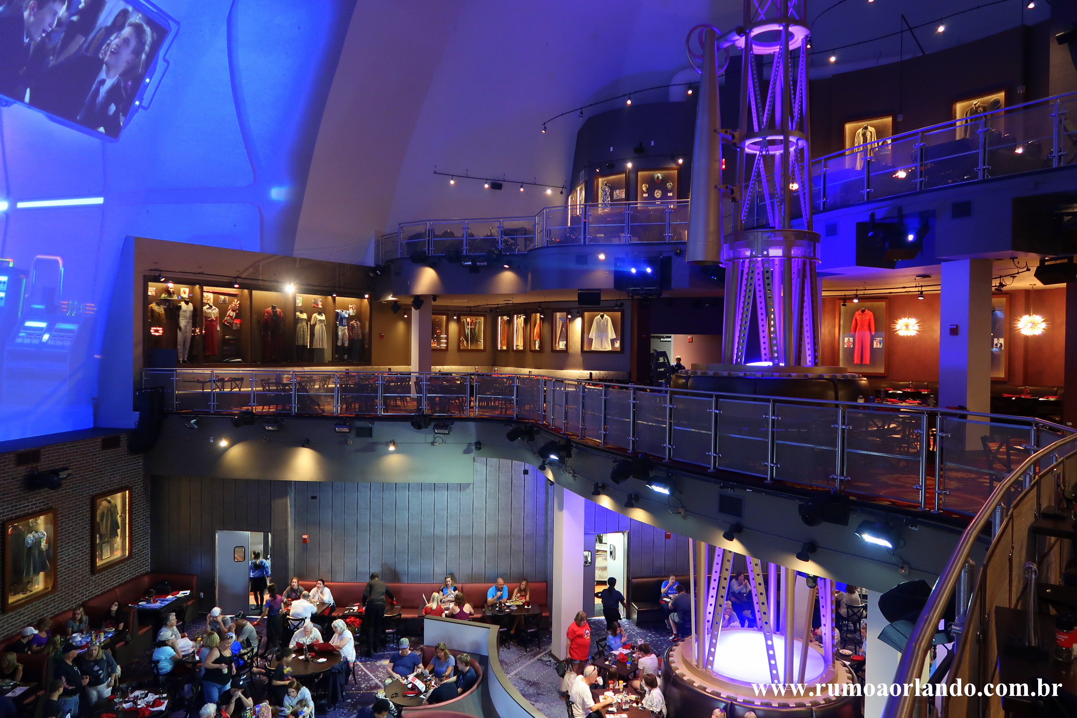 São três andares internos e há ainda uma varanda com uma vista incrível para o balão de Disney Springs. O terceiro andar é geralmente usado para grupos de excursão ou eventos privativos.