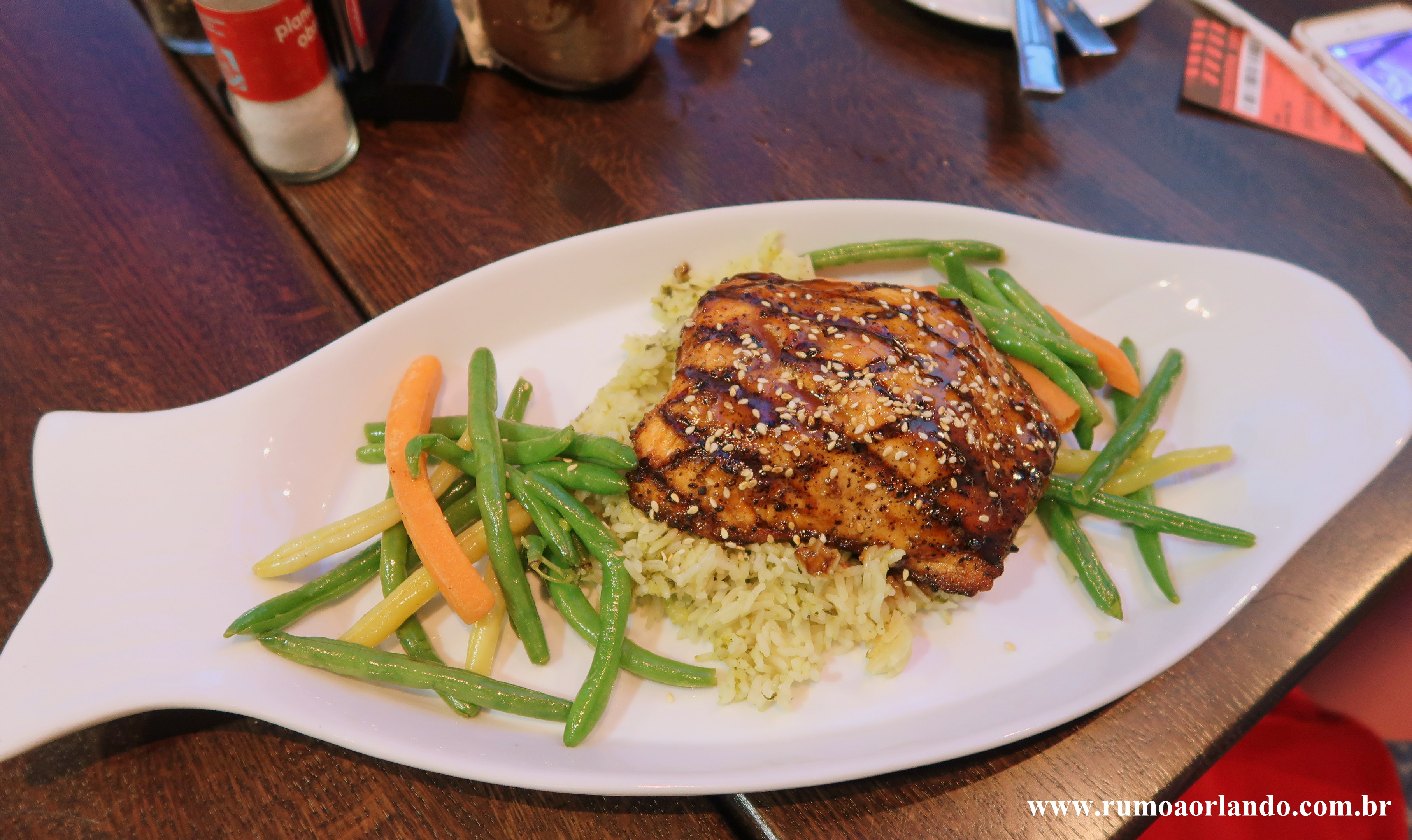 O prato é muito bem servido para uma pessoa e a metade eu levei para casa em uma Box (clique aqui para entender como funciona o To Go da sobra das comidas nos restaurantes nos EUA).