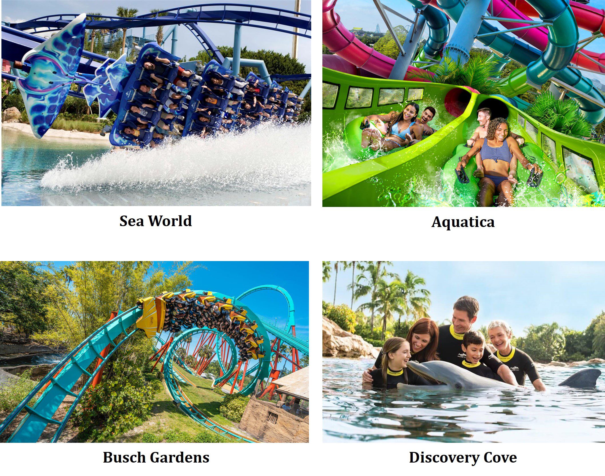 PARQUES DO GRUPO SEA WORLD - São 2 parques temáticos e 2 parques "aquáticos", localizados em Orlando e Tampa.