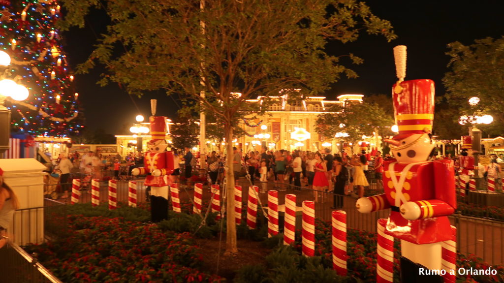 Nos últimos dias, mostramos como o parque está lindo, todo colorido com as cores vermelho, verde e branco, cheio de guirlandas e soldadinhos de chumbo.