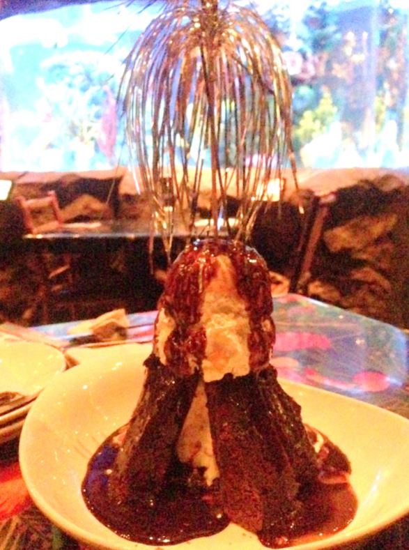 Para quem contratou o Disney Dining Plan, o plano de refeições da Disney, é exigido 01 crédito de Table Service para cada um na mesa. Caso venha a pedir a sobremesa Volcano, ela será servida para todos da mesa, contabilizando todas as sobremesas juntas, ou seja, não é permitido que uma pessoa peça o Volcano e as outras peçam outro tipo de sobremesa. O Volcano será para todos e somente isso. :( Mas acreditem, isso será suficiente, pois ele é gigantesco.